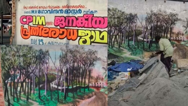 കൊല്ലം: സംഭവത്തിൽ വ്യാപക പ്രതിഷേധം ഉയർന്നു. കൊല്ലം കരുനാഗപ്പള്ളിയിലാണ് വഴിയാത്രക്കാരനായ ചിത്രകാരൻ വരച്ച ചിത്രങ്ങൾ സിപിഐഎം ജനകീയ പ്രതിരോധ യാത്രയുടെ ചുവരെഴുത്തിനായി മായിച്ചത്. നിരവധി പേരാണ് ഇതിനെതിരെ സാമൂഹിക മാധ്യമങ്ങളിൽ രംഗത്തെത്തിയത്.