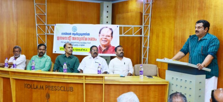 കൊല്ലം: നര്മ്മവും മഹാമനസ്കതയും അനുഭവങ്ങളും ഇഴചേര്ന്നുണ്ടായ നൂറ്റാണ്ടിലെ ഇതിഹാസ പുരുഷനാണ് ഇന്നസെന്റ് എന്നും അവസാന നിമിഷം വരെ ഏതു സങ്കീര്ണ്ണ സാഹചര്യത്തെയും ചിരിയിലൂടെ ലളിതവല്ക്കരിക്കാന് അദ്ദേഹത്തിന് കഴിഞ്ഞുവെന്നും എം.എല്.എ.യും ചലച്ചിത്രനടനുമായ എം. മുകേഷ് പറഞ്ഞു. ഒട്ടനവധി സിനിമകളില് ഒരുമിച്ച് അഭിനയമുഹൂര്ത്തങ്ങള് പങ്കിട്ട ഇന്നസെന്റിനെപ്പറ്റി ധാരാളം പറയാനുണ്ടായിരുന്നു അദ്ദേഹത്തിന്. അനുഗൃഹീത കലാകാരനും ചിരിയുടെ സമ്രാട്ടുമായ ഇന്നസെന്റിനെ അനുസ്മരിക്കാന് പത്തനാപുരം ഗാന്ധിഭവന്റെ നേതൃത്വത്തില് കൊല്ലം പ്രസ് ക്ലബ്ബില് സംഘടിപ്പിച്ച അനുസ്മരണയോഗം ഉദ്ഘാടനം ചെയ്ത് സംസാരിക്കുകയായിരുന്നു അദ്ദേഹം.