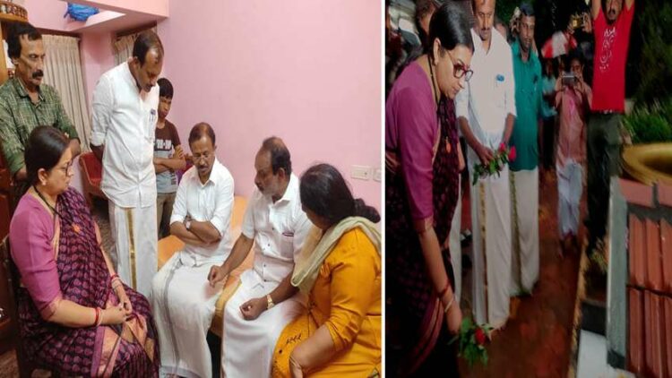 അന്തരിച്ച യുവഡോക്ടറുടെ മാതാപിതാക്കളായ കെ.ജി. മോഹന്ദാസ്, വസന്തകുമാരി എന്നിവരോടൊപ്പം ഏകദേശം ഒരു മണിക്കൂറോളം ഇരു കേന്ദ്രമന്ത്രിമാരും ചിലവഴിക്കുകയും അവരെ സാന്ത്വനിപ്പിക്കുകയും ചെയ്തു.