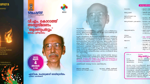 കോഴിക്കോട്: സ്വാതന്ത്ര്യ സമര സേനാനിയും പത്ര പ്രവര്ത്തകനും തപസ്യ സംസ്ഥാന പ്രസിഡന്റുമായിരുന്ന വി.എം കൊറാത്തിന്റെ 18ാമത് അനുസ്മരണ സമ്മേളനം ജൂണ് നാല് ഞായറാഴ്ച പുതിയറയിലെ എസ്.കെ. പൊറ്റക്കാട് ഹാളില് വെച്ചാണ് അനുസ്മരണ സമ്മേളനം നടത്തുക. ഇതോടൊപ്പം തപസ്യയുടെ പ്രൊഫഷണല് നാടകമായ ‘ആരണ്യ പര്വ്വത്തിന്റെ ഉദ്ഘാടനവും നടക്കും.