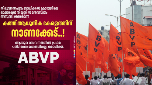 കോഴിക്കോട്: ഓപ്പറേഷന് തീയെറ്ററില് മതവസ്ത്രം അനുവദിക്കണമെന്ന് ആവശ്യപ്പെട്ട് തിരുവനന്തപുരം മെഡിക്കല് കോളജിലെ ഏഴോളം വിദ്യാര്ത്ഥികള് പ്രിന്സിപ്പാളിന് കത്ത് നല്കിയ സംഭവം ആധുനിക കേരളത്തിന് നാണക്കേടാണെന്ന് എബിവിപി സംസ്ഥാന ജോയിന്റ് സെക്രട്ടറി യദു കൃഷ്ണന്. ആതുര സേവനത്തില് പ്രഥമ പരിഗണന നല്കേണ്ടത് രോഗിക്കാണെന്നിരിക്കെ അതിലേക്ക് മതവും മതചിഹ്നങ്ങളും തിരുകികയറ്റാന് ചില സങ്കുചിത മനോഭാവമുള്ളവര് ശ്രമിക്കുന്നത് അപകടകരമാണ്. ഇതിന് കുട പിടിക്കുന്ന എസ്എഫ്ഐയും എംഎസ്എഫും ഏത് നൂറ്റാണ്ടിന്റെ പിന്നാമ്പുറങ്ങളിലേക്കാണ് കേരളത്തെ നയിക്കാന് ശ്രമിക്കുന്നത്.?