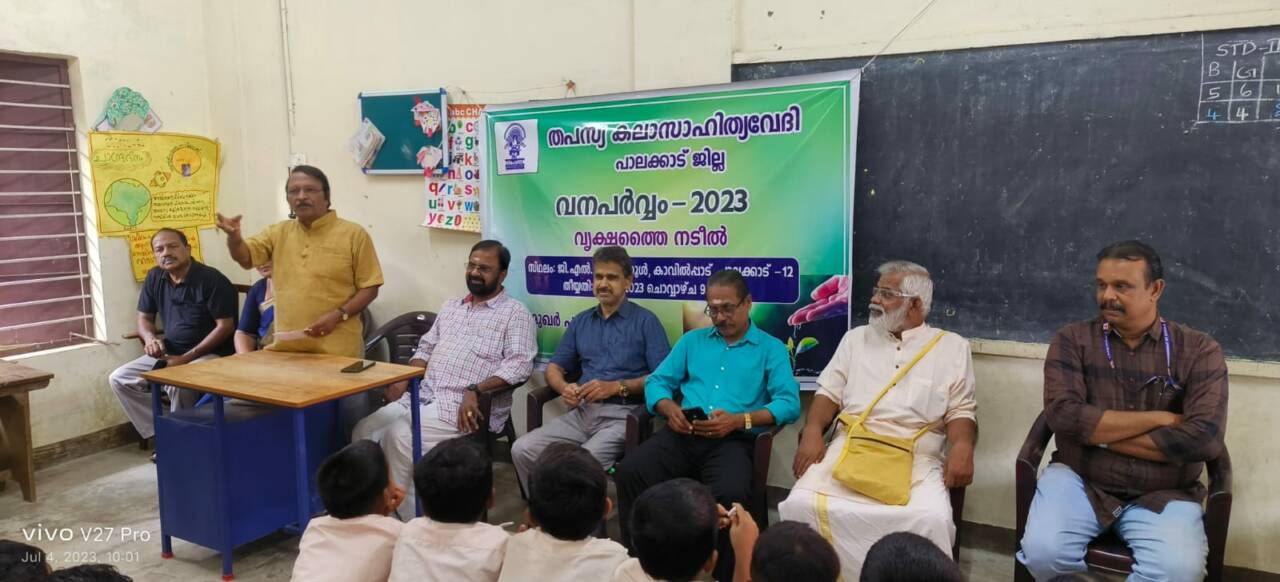 പാലക്കാട്: തപസ്യ കല സാഹിത്യവേദി പാലക്കാട് ജില്ല സമിതിയുടെ ആഭിമുഖ്യത്തിൽ “വനപർവം 2023” കാവിൽപാട് GLP സ്കൂളിൽ വെച്ച് ആഘോഷിക്കപ്പെട്ടു. ജില്ലാ പ്രസിഡന്റ് ശ്രീ A. V. വാസുദേവൻ പോറ്റിയുടെ അധ്യക്ഷതയിൽ കൂടിയ യോഗം തപസ്യ സംസ്ഥാന ജനറൽ സെക്രട്ടറി ശ്രീ.കെ.ടി. രാമചന്ദ്രൻ ഉൽഘാടനം ചെയ്തു തുടർന്ന് സ്കൂൾ പരിസരത്ത് വൃക്ഷതൈ നട്ടു. പ്രധാന അദ്ധ്യാപകൻ ശ്രീ. രാജേന്ദ്രൻ, പുതുപ്പരിയാരം വാർഡ് മെമ്പർ ശ്രീമതി കെ രജിത, യൂണിറ്റ് സെക്രട്ടറി വി. എസ്. മുരളീധരൻ എന്നിവർ സംസാരിച്ചു.യോഗത്തിൽ ജില്ലാ ട്രഷറർ കെ ശിവദാസ്, യൂണിറ്റ് എക്സിക്യൂട്ടീവ് അംഗം ശൈ ലരാജ് നാരായണൻ യൂണിറ്റ് ട്രഷറർ എം. ഗോപാലകൃഷ്ണൻ എന്നിവർ പങ്കെടുത്തു കുട്ടികൾക്ക് മധുര പലഹാരങ്ങൾ വിതരണം ചെയ്തു.