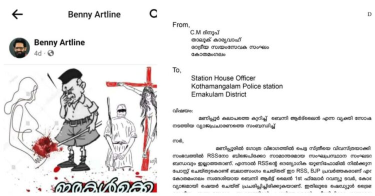 മണിപ്പൂർ; സോഷ്യൽ മീഡിയയിൽ വ്യാജ പ്രചരണം, കോതമംഗലത്ത് ആർട്ട്‌ലൈൻ ബെന്നിയ്ക്കെതിരെ കേസ് ഫയൽ ചെയ്തു