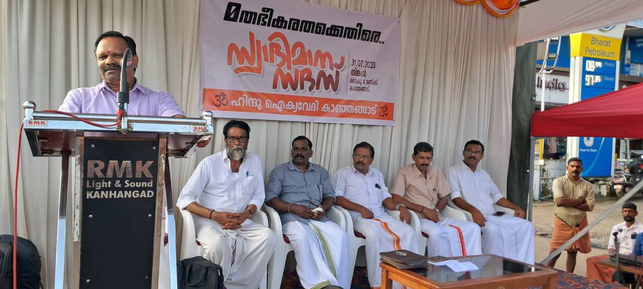 കാഞ്ഞങ്ങാട്: മുസ്ലിം യൂത്ത് ലീഗ് കാഞ്ഞങ്ങാട് നടത്തിയ പ്രകടനത്തിലെ വിദ്വേഷ മുദ്രാവാക്യം സമൂഹത്തിന്റെ പ്രതികരണം അറിയാനുള്ള തീവ്രവാദികളുടെ ലിറ്റ്മസ് ടെസ്റ്റ് ആണെന്നും ഇത്തരം ടെസ്റ്റിനെതിരെ മിണ്ടാതിരിക്കുകയോ പ്രതികരിക്കാതിരിക്കുകയോ ചെയ്താല് അവര് അടുത്തത് തുടങ്ങുമെന്നും ഹിന്ദു ഐക്യവേദി സംസ്ഥാന വര്ക്കിംഗ് പ്രസിഡന്റ് വല്സന് തില്ലങ്കേരി. ഹിന്ദു ഐക്യവേദി കാഞ്ഞങ്ങാട് സംഘടിപ്പിച്ച മതഭീകരതക്കെതിരെ സ്വാഭിമാന സദസ് ഉദ്ഘാടനം ചെയ്ത് സംസാരിക്കുകയായിരുന്നു അദ്ദേഹം.