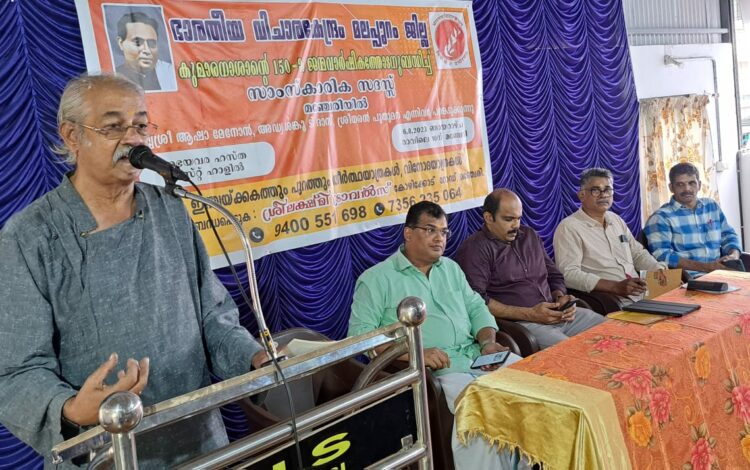 മഞ്ചേരി: മലയാള കവി എന്നോ ദേശീയ കവി എന്നോ മാത്രം ഒതുക്കി നിർത്തേണ്ട കവിയല്ല കുമാരനാശാനെന്നും, വിശ്വമഹാകവി എന്ന തരത്തിൽ ശ്രദ്ധയാകർഷിക്കപ്പെടേണ്ട കവിയാണ് എന്നും പ്രശസ്ത സാഹിത്യ നിരൂപകൻ ആഷാമേനോൻ പറഞ്ഞു. സനാതന ധർമ്മത്തിന്റെ മർമ്മം തന്റെ ശിഷ്യനിൽ പകർന്നു നൽകാൻ തക്ക അർഹതയുള്ള ആത്മീയാചാര്യനായ ശ്രീനാരായണനെ ഗുരുവായി ലഭിച്ചതാണ് ആശാന്റെ ഭാഗ്യം. കുമാരനാശാൻ്റെ നൂറ്റമ്പതാം ജന്മവാർഷികത്തോടനുബന്ധിച്ച് ഭാരതീയ വിചാരകേന്ദ്രം മലപ്പുറം ജില്ലാ കമ്മറ്റി സംഘടിപ്പിച്ച ആശാൻ സ്മൃതി സദസ്സിൽ പ്രഭാഷണം നടത്തുകയായിരുന്നു അദ്ദേഹം.