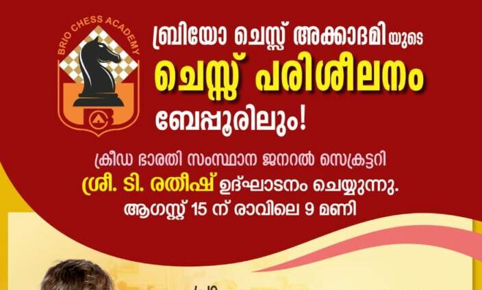 കോഴിക്കോട്: സ്വാതന്ത്ര്യദിനവുമായി ബന്ധപെട്ടു കോഴിക്കോട് ബെപ്പൂർ ഹൈസ്കൂളിന് സമീപമുള്ള ദീനദയാൽ സേവ മന്ദിരത്തിൽ ഓഗസ്റ്റ് 15 ന് ആരംഭിച്ച ബ്രിയോ ചെസ്സ് അക്കാദമി ഉദ്ഘാടനം ക്രീഡ ഭാരതി സംസ്ഥാന ജനറൽ സെക്രട്ടറി ടി.രതീഷ് നിർവഹിച്ചു. അതിനോട് അനുബന്ധിച്ചു അഖില കേരള ചെസ്സ് ടൂർണമെന്റ് സംഘടിപ്പിച്ചു. മത്സരത്തിൽ പങ്കെടുത്ത കുട്ടികളുമായി ചെസ്സ് കളിച്ചു കൊണ്ട് മത്സരവും ഉദ്ഘാടനം ചെയ്തു. ക്രീഡ ഭാരതി കോഴിക്കോട് ട്രഷറർ സന്തോഷ്, ജിജേഷ്, വത്സരാജ് എന്നിവർ പങ്കെടുത്തു.