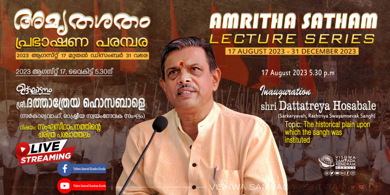 കോഴിക്കോട്: ആര്‍എസ്എസ് ശതാബ്ദിയോടനുബന്ധിച്ച് കേസരി വാരിക സംഘടിപ്പിക്കുന്ന അമൃതശതം വ്യാഖ്യാനമാല-പ്രഭാഷണ പരമ്പരയ്ക്ക് ഇന്ന് തുടക്കം. വൈകിട്ട് 5.30ന് കേസരിഭവന്‍ പരമേശ്വരം ഹാളില്‍ ആര്‍എസ്എസ് സര്‍കാര്യവാഹ് ദത്താത്രേയ ഹൊസബാളെ ഉദ്ഘാടനം നിര്‍വ്വഹിക്കും.