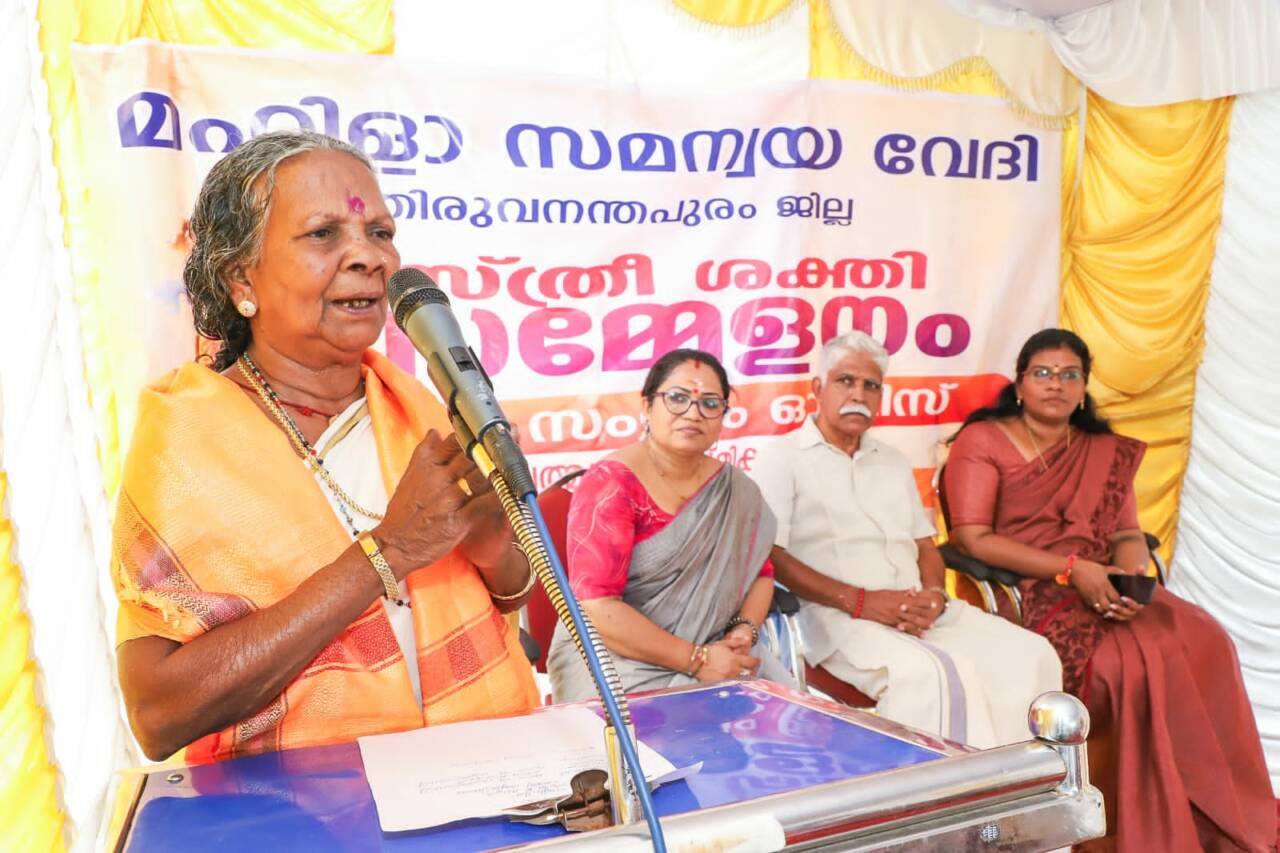 തിരുവനന്തപുരം: മഹിളാ സമന്വയ വേദിയുടെ നേതൃത്വത്തിൽ ദേശ വ്യാപകമായി സംഘടിപ്പിക്കുന്ന സ്ത്രീശക്തി സമ്മേളനങ്ങളുടെ തിരുവനന്തപുരം ജില്ലാ സ്വാഗതസംഘം ഓഫീസ് ശ്രീകണ്ഠേശ്വരത്ത് പദ്മശ്രീ ലക്ഷ്മിക്കുട്ടി അമ്മ ഉദ്ഘാടനം ചെയ്തു. ശാസ്ത്രജ്ഞർ, വിദ്യാഭ്യാസ മേഖലയിലുള്ളവർ, കലാ, കായിക രംഗത്തുള്ളവർ, അഭിഭാഷകർ, ആരോഗ്യ പ്രവർത്തകർ , എഴുത്തുകാർ , തൊഴിലുറപ്പ് തൊഴിലാളികൾ തുടങ്ങി സർവ മേഖലകളിലുമുള്ള ആയിരക്കണക്കിന് വ നിതകളുടെ മഹാസംഗമം എല്ലാ ജില്ലകളിലും സംഘടിപ്പിക്കുകയാണ്ലക്ഷ്യം. തിരുവനന്തപുരം ജില്ലാ സ്ത്രീശക്തി സമ്മേളനം നവംബർ 26 ന് ഉദയ കൺവൻഷൻ സെന്ററിൽ നടക്കും. സ്വാഗത സംഘം ഓഫീസ് ഉദ്ഘാടന സമ്മേളനത്തിൽ മഹിള സമന്വയ വേദി ജില്ലാ ജോയിന്റ് കൺവീനർ നീലിമ ആർ. കുറുപ്പ് അധ്യക്ഷത വഹിച്ചു, സംസ്ഥാന കൺവീനർ അഡ്വ. ജി. അഞ്ജനാ ദേവി മുഖ്യ പ്രഭാഷണം നടത്തി. രാഷ്ട്രീയ സ്വയംസേവക സംഘം തിരുവനന്തപുരം വിഭാഗ് സംഘചാലക് പ്രൊഫ. എം.എസ്. രമേശൻ സംസാരിച്ചു. ലക്ഷ്മിപ്രിയ സ്വാഗതവും സൂര്യ പ്രേം നന്ദിയും പറഞ്ഞു.വിവിധ സംഘടനാ പ്രവർത്തകർ പരിപാടിയിൽ പങ്കെടുത്തു.
