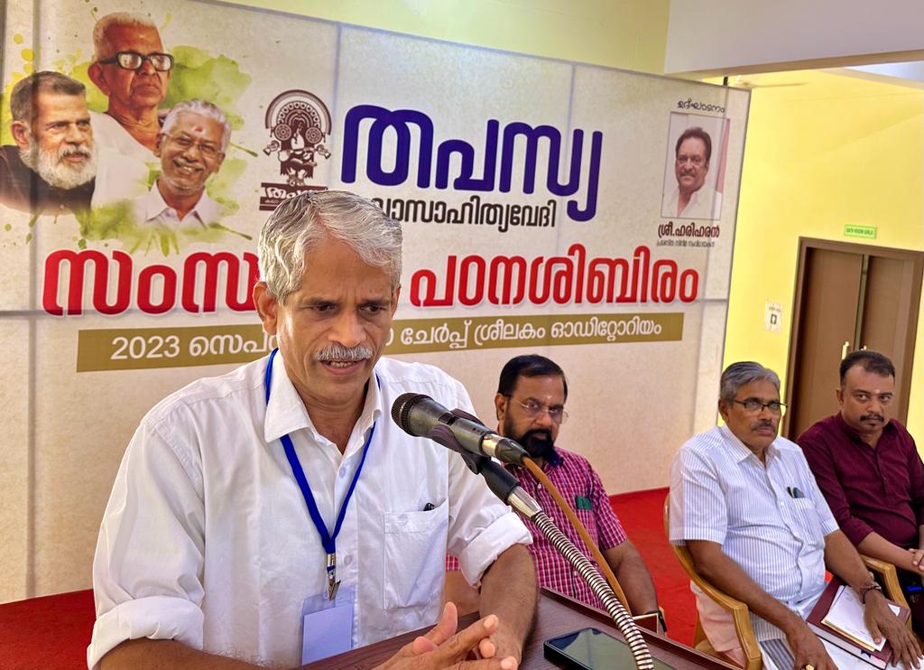 കവി കല്ലറ അജയൻ അധ്യക്ഷനായി. ടി.എസ്. നീലാംബരൻ, ഇ.എം ഹരി എന്നിവരും സംസാരിച്ചു രണ്ടുദിവസങ്ങളിലായി നടന്ന പഠനശിബിരം ഇന്ന് സമാപിച്ചു. സമാപന സമ്മേളനം ആർഎസ്എസ് പ്രാന്ത സഹകാര്യവാഹ് കെ. പി.രാധാകൃഷ്ണൻ ഉദ്ഘാടനം ചെയ്തു.