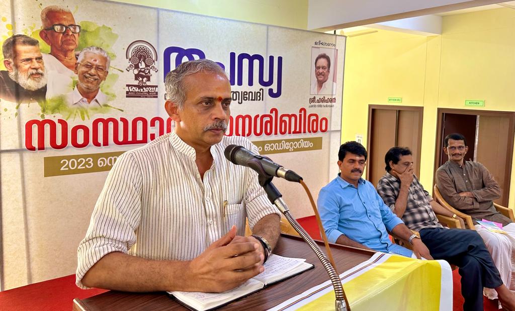 തപസ്യ സംസ്ഥാന പ0ന ശിബിരത്തിൻ്റെ സമാപനം ആർ എസ് എസ് പ്രാന്ത സഹകാര്യവാഹ് കെ.പി.രാധാകൃഷണൻ സംസാരിക്കുന്നു.