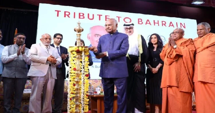 ബഹറിനില്‍ എത്തിയ മുന്‍ രാഷ്‌ട്രപതിയും അദ്ദേഹത്തിന്റെ ഭാര്യ, മകള്‍ എന്നിവര്‍ ബഹറിന്‍ ശ്രീനാരായണ കള്‍ച്ചറല്‍ സൊസൈറ്റിയും ഗുരുദേവ സൊസൈറ്റിയും സ്ഥാപിച്ച ഗുരുദേവക്ഷേത്രങ്ങളില്‍ ദര്‍ശനം നടത്തി ആരാധനയില്‍ പങ്കുചേര്‍ന്നു. ധര്‍മ്മസംഘം പ്രസിഡന്‍റ് സച്ചിദാനന്ദ സ്വാമി മുന്‍പ്രസിഡന്‍റിനും കുടുംബാംഗങ്ങള്‍ക്കും തീര്‍ത്ഥവും പ്രസാദവും നല്‍കി. കള്‍ച്ചറല്‍ അസ്സോസിയേഷനില്‍ നടന്ന ലഘുസമ്മേളനത്തിലും മുന്‍ രാഷ്‌ട്രപതി രാംനാഥ് കോവിന്ദ് ഗുരുദേവ ദര്‍ശനത്തേയും മഹത്വത്തേയും ആദരവോടെ പ്രഖ്യാപിച്ചുകൊണ്ട് പ്രസംഗിച്ചു. ഈ രണ്ട് ഗുരുദേവ ക്ഷേത്രങ്ങളിലും ദര്‍ശനം നടത്തിയത് ഗുരുദേവനോടുള്ള ഭക്ത്യാദരങ്ങള്‍കൊണ്ടാണെന്ന് അദ്ദേഹം സൂചിപ്പിക്കുകയും ചെയ്തു. സെപ്റ്റംബര്‍ 7, 8, 9 തീയതികളിലായിരുന്നു മുഖ്യപരിപാടികള്‍.