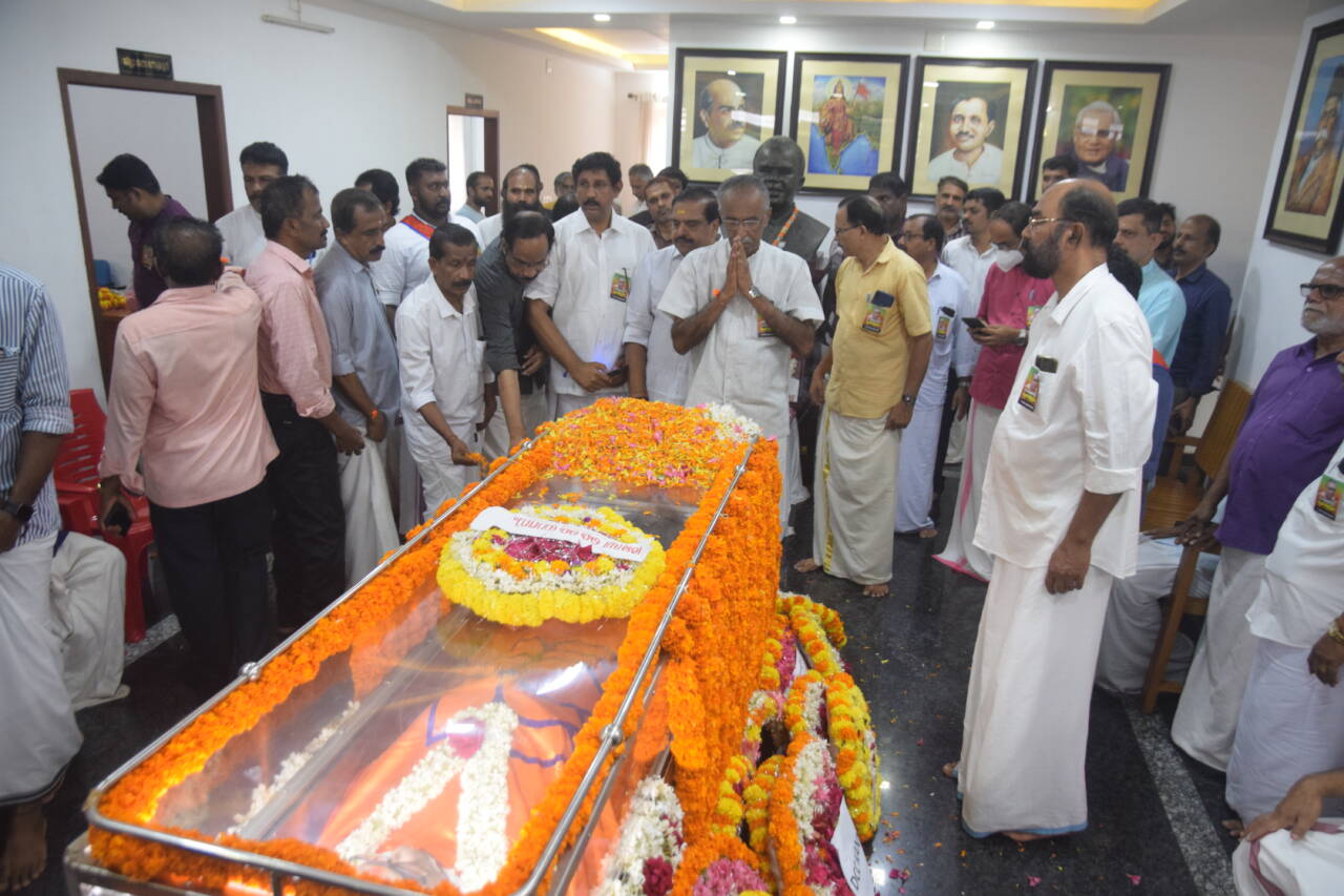ഝാര്ഖണ്ഡ് ഗവര്ണ്ണര് സി.പി. രാധാകൃഷ്ണന്, ബംഗാള് ഗവര്ണ്ണര് സി.വി. ആനന്ദബോസ്, കേന്ദ്രമന്ത്രി വി. മുരളീധരന്, എംപിമാരായ പി. സന്തോഷ്, വി. ശിവദാസന്, ആര്എസ്എസ് പ്രാന്ത സംഘചാലക് അഡ്വ. കെ.കെ. ബാലറാം, ക്ഷേത്രീയ സഹസമ്പര്ക്ക പ്രമുഖ് പി.എന്. ഹരികൃഷ്ണന്, പ്രാന്ത പ്രചാരക് എസ്. സുദര്ശനന്, സഹപ്രാന്ത പ്രചാരക് അ. വിനോദ്, ബിജെപി ദേശീയ വൈസ് പ്രസിഡണ്ട് എ.പി. അബ്ദുളളക്കുട്ടി, സംസ്ഥാന അദ്ധ്യക്ഷന് കെ. സുരേന്ദ്രന്, ബിജെപി മുന് സംസ്ഥാന അധ്യക്ഷന്മാരായ ഒ. രാജഗോപാല്, സി.കെ. പത്മനാഭന് പി.കെ. കൃഷ്ണദാസ്, സംഘടനാ ജനറല് സെക്രട്ടറി സുഭാഷ്, വൈസ്പ്രസിഡന്റുമാരായ എ.എന്. രാധാകൃഷ്ണന്, ശോഭാസുരേന്ദ്രന്, ജനറല് സെക്രട്ടറി എം.ടി. രമേശ്, സെക്രട്ടറിമാരായ ബി. ഗോപാലകൃഷ്ണന്, കെ. രഞ്ജിത്ത്, സിപിഎം നേതാക്കളായ പി. ജയരാജന്, എം.വി. ജയരാജന് തുടങ്ങി നിരവധി പ്രമുഖര് അന്ത്യാഞ്ജലി അര്പ്പിച്ചു. സംസ്കാരത്തിന് ശേഷം സര്വകക്ഷി അനുശോചന യോഗവും ചേര്ന്നു.