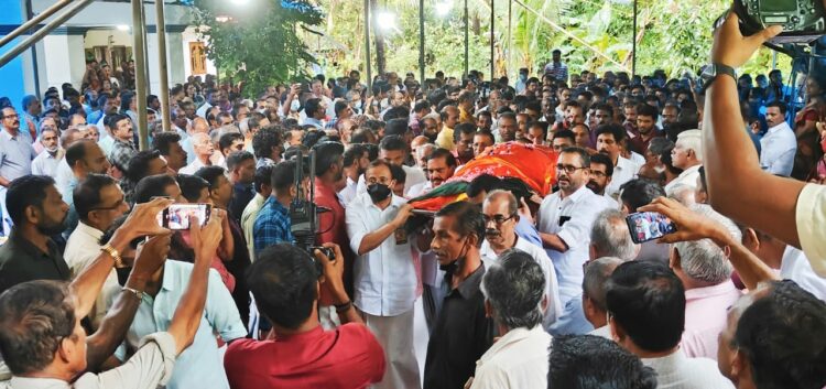 കണ്ണൂര്: ജന്മനാടിന്റെ സ്നേഹാദരങ്ങളേറ്റുവാങ്ങി മുതിര്ന്ന ബിജെപി നേതാവ് പി.പി. മുകുന്ദന് അന്ത്യയാത്ര. അന്ത്യപ്രണാമം നല്കി, പ്രാര്ത്ഥന ചൊല്ലി ആയിരങ്ങള് മുകുന്ദേട്ടന് യാത്രാമൊഴിയേകി. കഴിഞ്ഞ ദിവസം വൈകിട്ട് ആറരയ്ക്ക് ആര്എസ്എസ് പ്രാന്തകാര്യാലയമായ എറണാകുളം എളമക്കര മാധവനിവാസില് നിന്ന് ആരംഭിച്ച വിലാപയാത്ര ഇന്നലെ പുലര്ച്ചെ അഞ്ചുമണിയോടെയാണ് കണ്ണൂര് ബിജെപി ജില്ലാ കമ്മിറ്റി ഓഫീസായ മാരാര്ജി ഭവനിലെത്തിയത്. ആയിരങ്ങളാണ് അദ്ദേഹത്തെ അവസാനമായി ഒരുനോക്ക് കാണാന് അവിടേക്ക് ഒഴുകിയെത്തിയത്.
