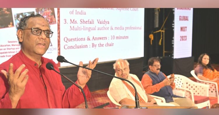 പാലക്കാട്: സനാതനധര്മത്തെ ആര്ക്കും നശിപ്പിക്കാന് കഴിയില്ലെന്നും അതിന്റെ കാവല്ക്കാരന് ദൈവമാണെന്നും സുപ്രീം കോടതി അഡീ. സോളിസിറ്റര് ജനറല് അഡ്വ. എന്. വെങ്കിട്ടരാമന് പറഞ്ഞു. കേരള ബ്രാഹ്മണസഭയുടെ ബ്രാഹ്മിന്സ് ഗ്ലോബല് മീറ്റിന്റെ രണ്ടാംദിനത്തില് ‘ലോകസംസ്കാരം വേദപാരമ്പര്യത്തിലൂടെ’ എന്ന വിഷയത്തില് സംഘടിപ്പിച്ച സെമിനാറില് സംസാരിക്കുകയായിരുന്നു അദ്ദേഹം.