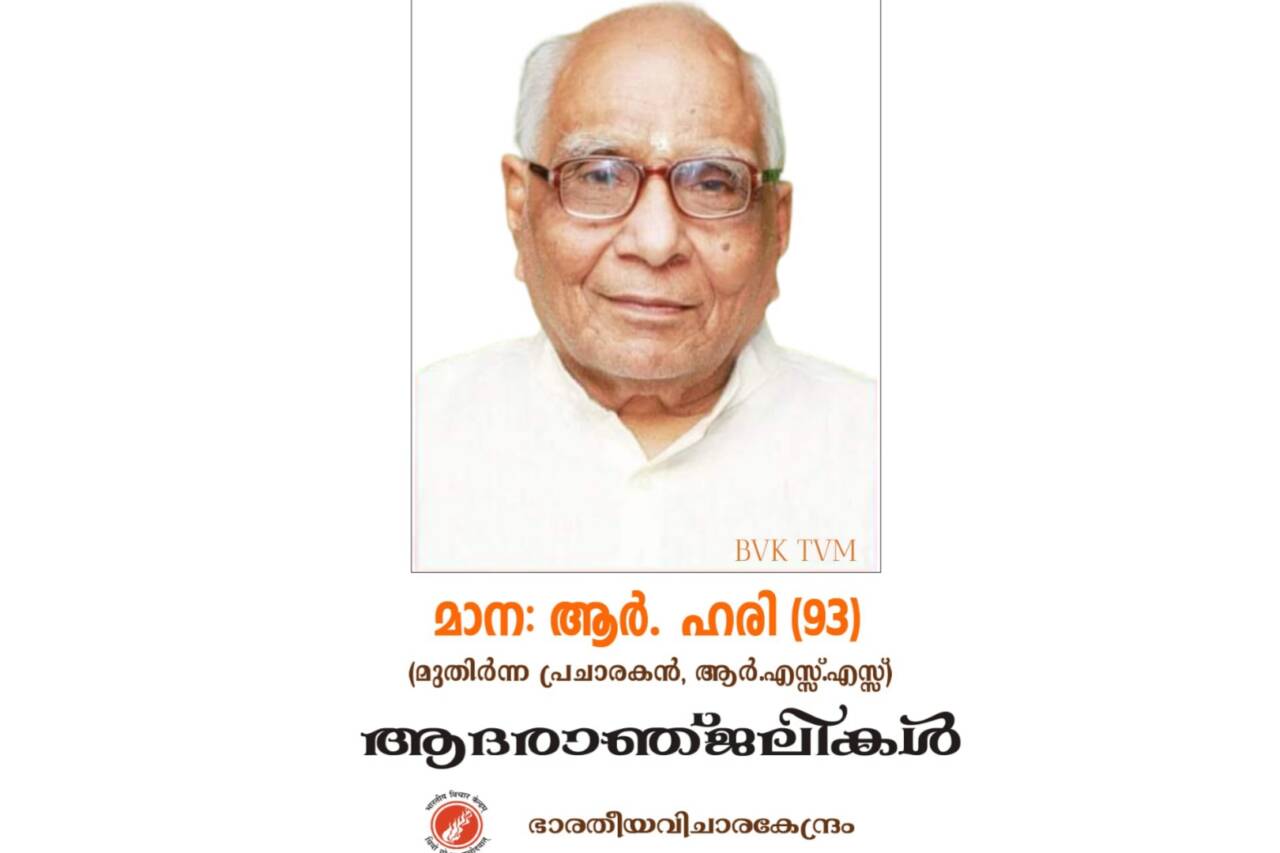 അവസാന നിമിഷം വരെയും കർമ്മനിരതനായിരുന്നു ഹരിയേട്ടൻ. പൂർണമായും അക്ഷരോപാസനയ്ക്ക്വേണ്ടിയായിരുന്നു അവസാന കാലം ചിലവഴിച്ചത്. കൃത്യ കൃത്യതയോടെയാണ് അദ്ദേഹം യാത്രയായത്. ആ ധന്യ സ്മരണയ്ക്ക് മുമ്പിൽ ഭാരതീയ വിചാര കേന്ദ്രം അത്യാദരപൂർവ്വം പ്രണമിക്കുന്നു.