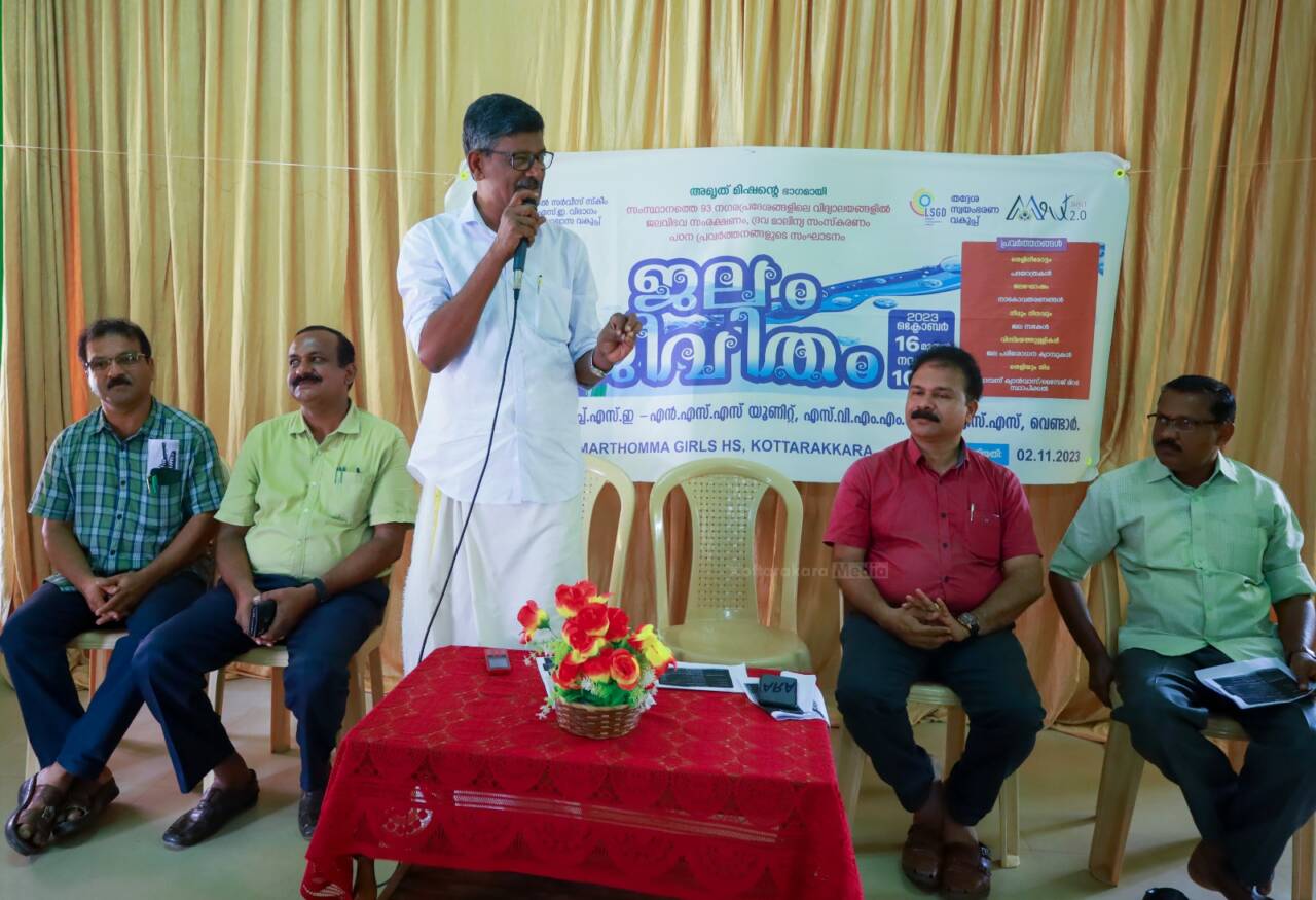 ജീവജല സ്രോതസ്സുകൾ സംരക്ഷിക്കാനും ദ്രവമാലിന്യ സംസ്കരണം നടപ്പിലാക്കാനും ലക്ഷ്യമിട്ട് വിദ്യാർത്ഥികൾ നടത്തുന്ന ബോധവൽക്കരണ പരിപാടിയായ ജലം ജീവിതത്തിന് തുടക്കമായി. തദ്ദേശസ്വയംഭരണ വകുപ്പിന് കീഴിലുള്ള അമൃതംമിഷൻ വൊക്കേഷണൽ ഹയർ സെക്കൻഡറി നാഷണൽ സർവീസ് സ്കീമുമായി സഹകരിച്ചാണ് ഈ പദ്ധതി നടപ്പിലാക്കുന്നത്. നഗരവിദ്യാലയങ്ങളിലെ വിദ്യാർത്ഥികളെ ബോധവത്കരിക്കാൻ നടത്തുന്ന പ്രവർത്തനം കൊട്ടാരക്കരയിൽ വെണ്ടാർ എസ് വി.എം.എം.വിഎച്ച്എസ്എസ്സിലെ നാഷണൽ സർവീസ് സ്കീം ആണ് നടപ്പാക്കുന്നത്. കൊട്ടാരക്കര മാർത്തോമ ഗേൾസ് ഹൈസ്കൂളിൽ നടന്ന ജലം ജീവിതം ബോധവൽക്കരണ പരിപാടി നഗരസഭഅധ്യക്ഷൻ എസ് ആർ രമേഷ് ഉദ്ഘാടനം ചെയ്തു.പി ടി എ പ്രസിഡന്റ് എ.ഷാജു അധ്യക്ഷനായ സമ്മേളനത്തിൽ സ്കൂൾ പ്രിൻസിപ്പൽ ടി.രാജേഷ്, മാർത്തോമാ ഗേൾസ് ഹൈസ്കൂൾ ഹെഡ്മാസ്റ്റർ ജേക്കബ് എബ്രഹാം, വിഎച്ച്എസ്ഇ എൻഎസ്എസ് ജില്ലാ കോ ഓർഡിനേറ്റർ സജിമോൻ പി എ ,അധ്യാപകരായ സൂസൻ ,അജിലാൽ,സഞ്ജയൻ പാത്തല തുടങ്ങിയവരും സംബന്ധിച്ചു. പരിപാടികളുടെ ഭാഗമായി ഫ്ലാഷ് മോബ് ജലംജീവിതം എന്ന പേരിലുള്ള തെരുവുനാടകം എന്നിവ കുട്ടികൾക്ക് മുന്നിൽ അവതരിപ്പിച്ചു. പദ്ധതിയുടെ ഭാഗമായി സ്കൂളിൽ മെസ്സേജ് മിറർ സ്ഥാപിക്കുകയും വിദ്യാർത്ഥികൾക്ക് പ്രചരണ സാമഗ്രികൾ സമ്മാനിക്കുകയും ചെയ്തു. വരും ദിവസങ്ങളിൽ കുടിവെള്ളത്തിൻ്റെ ഗുണനിലവാര പരിശോധന, ദ്രവമാലിന്യ സംസ്കരണ പ്രദർശനം തുടങ്ങിയവയും സംഘടിപ്പിയ്ക്കുമെന്ന് പ്രോഗ്രാം ഓഫീസർ എസ്.സന്തോഷ് കുമാർ അറിയിച്ചു.