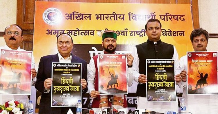 മുംബൈ: ഛത്രപതി ശിവജി മഹാരാജിന്റെ കിരീടധാരണത്തിന്റെ 350-ാം വാര്ഷികത്തോടനുബന്ധിച്ച് എബിവിപി ഈ മാസം 28ന് ഹിന്ദവി സ്വരാജ് യാത്ര സംഘടിപ്പിക്കുന്നു.