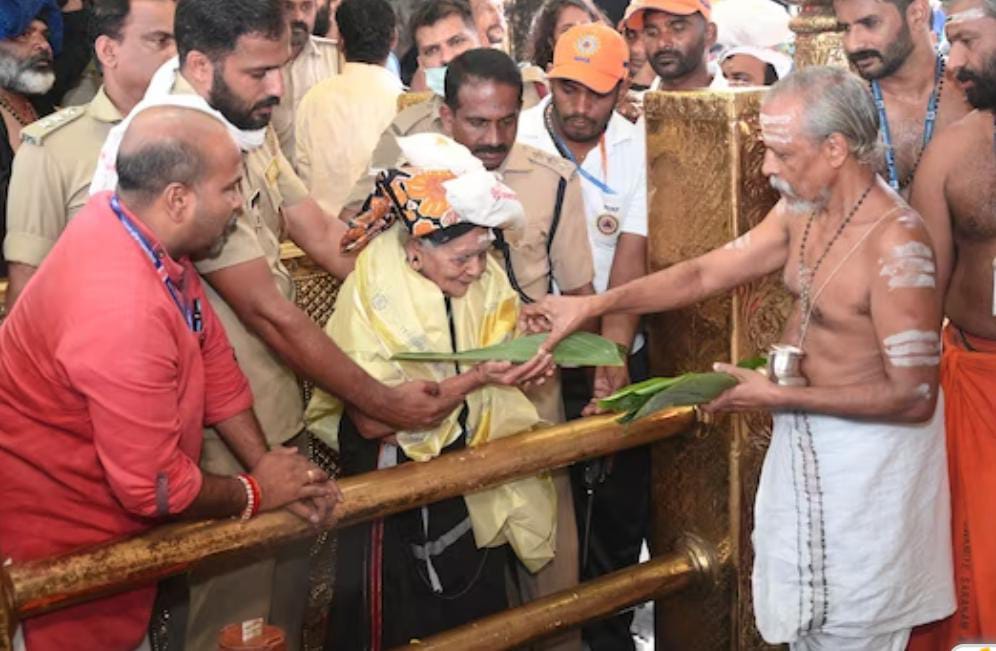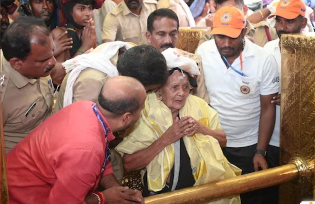 ശബരിമല: നൂറാം വയസില് കന്നിമല ചവിട്ടി പാറുക്കുട്ടിയമ്മ. വയനാട് മൂന്നാനക്കുഴി പറയരുതോട്ടത്തില് പാറുക്കുട്ടിയമ്മ തന്റെ മൂന്നു തലമുറയില്പ്പെട്ടവരോടൊപ്പമാണ് ആദ്യമായി ശബരിമല ചവിട്ടിയത്. കൊച്ചുമകന് ഗിരീഷ് കുമാര്, കൊച്ചുമകന്റെ മക്കളായ അമൃതേഷ്, അന്വിത, അവന്തിക എന്നിവരോടൊപ്പമാണ് പാറുക്കുട്ടിയമ്മ സന്നിധാനത്തെത്തിയത്.