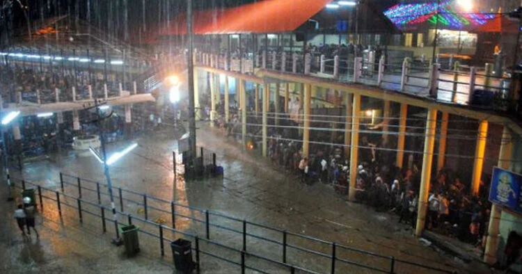 കോരിച്ചൊരിയുന്ന മഴയെ അവഗണിച്ച് മല ചവിട്ടി ദര്ശനം നടത്തുന്ന ഭക്തരില് ബഹുഭൂരിഭാഗവും അടുത്ത ദിവസം പുലര്ച്ചെ നെയ്യഭിഷേകം നടത്തി മലയിറങ്ങാനായി സന്നിധാനത്തിന്റെ വിവിധ ഭാഗങ്ങളിലായി വിരി വെയ്ക്കും. വിരി വെച്ച് വിശ്രമിക്കവേ അപ്രതീക്ഷിതമായി എത്തുന്ന കനത്ത മഴയില് നിന്നും രക്ഷ നേടാന് കൊച്ചു കുട്ടികളുമായി എത്തുന്ന തീര്ത്ഥാടകര് അഭയ സ്ഥലം തേടി പായുന്നത് താഴെ തിരുമുറ്റത്തടക്കം പതിവ് കാഴ്ചയാണ്. മാളികപ്പുറം നടയ്ക്ക് എതിര് വശത്തായി മീഡിയ സെന്റര് അടക്കം പ്രവര്ത്തിച്ചിരുന്ന ഇരു നില കെട്ടിടം അടക്കമുള്ള നിര്മാണങ്ങള് തീര്ത്ഥാടകര്ക്ക് വിരിപ്പന്തല് ഒരുക്കാനെന്ന പേരില് നാലു വര്ഷം മുമ്പ് പൊളിച്ചു നീക്കിയിരുന്നു. എന്നാല് ആ സ്ഥലങ്ങളില് ഭക്തര്ക്ക് വേണ്ട സൗകര്യം ഒരുക്കാന് ബോര്ഡിന് ഇക്കാലമത്രയും കഴിഞ്ഞിട്ടില്ല.