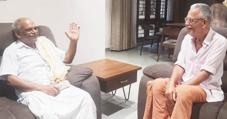 പ്രാണപ്രതിഷ്ഠാ സമ്പര്ക്കത്തിനിടയിലായിരുന്നു ആ കൂടിച്ചേരല്… ആദ്യകര്സേവക സംഘത്തിലുണ്ടായിരുന്ന രണ്ടുപേര് ഒരുമിച്ച് കണ്ടപ്പോള് പെയ്തിറങ്ങിയതത്രയും ഓര്മ്മകള്… അയോദ്ധ്യയിലേക്കുള്ള യാത്ര, അറസ്റ്റ്, ജയില്, നാടൊട്ടുക്ക് നടന്ന സംഘര്ഷങ്ങള്… വര്ഷം 34 പിന്നിടുന്നു. ഇതാ ഇപ്പോള് പ്രാണപ്രതിഷ്ഠയുടെ ആഘോഷം… കരുവിശ്ശേരിയിലെ ഈ വീട്ടില് കരകവിയുകയാണ് ആവേശം… ആദ്യ കര്സേവയില് പങ്കെടുത്ത കെ. ഗംഗാധരനും എളമ്പിലാശ്ശേരി ഗോവിന്ദനും ഓര്ത്തെടുത്തത് സാഹസികതയുടെ വീരഗാഥകള്…