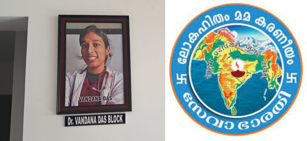 2024 ജനുവരി 15 നു ഉദ്ഘാടനം ചെയ്ത സേവാഭാരതിയുടെ കോട്ടയം മെഡിക്കൽ കോളേജിനടുത്തുള്ള സാന്ത്വന കേന്ദ്രം ശബരിഗിരീശ സേവ നിലയത്തിലെ ഒരു ബ്ലോക്കിനു, വന്ദനദാസ് ബ്ലോക്ക് എന്ന് നാമകരണം ചെയ്ത് രോഗീ പരിചരണത്തിനിടെ ജീവൻ നഷ്ടപ്പെട്ട വന്ദനയുടെ ഓർമ്മ നിലനിർത്തുന്നു. ആരോഗ്യ പ്രവർത്തകരുടെ സേവനത്തിന് സേവാഭാരതിയുടെ ആദരം കൂടെയാണ് ഇതിലൂടെ ലക്ഷ്യം വെയ്ക്കുന്നത്.