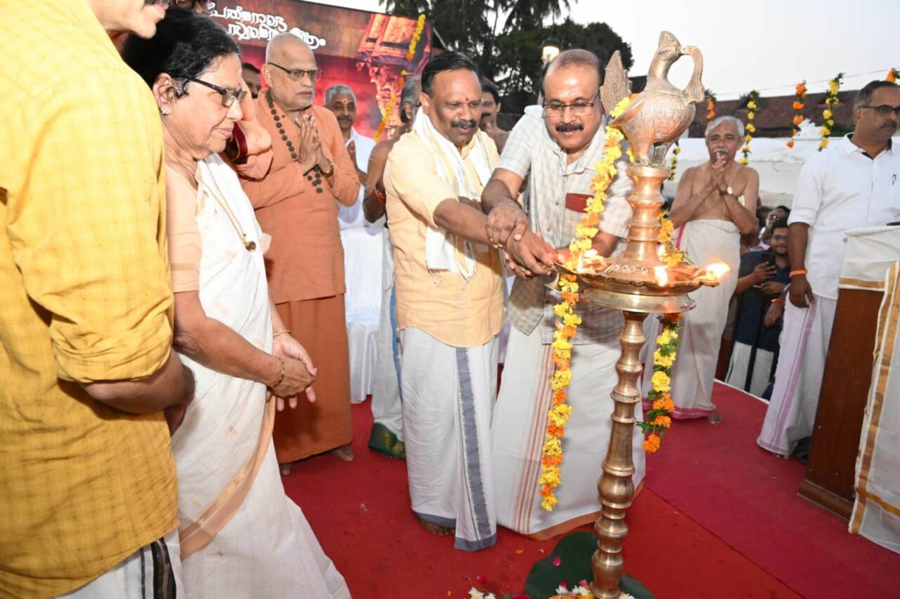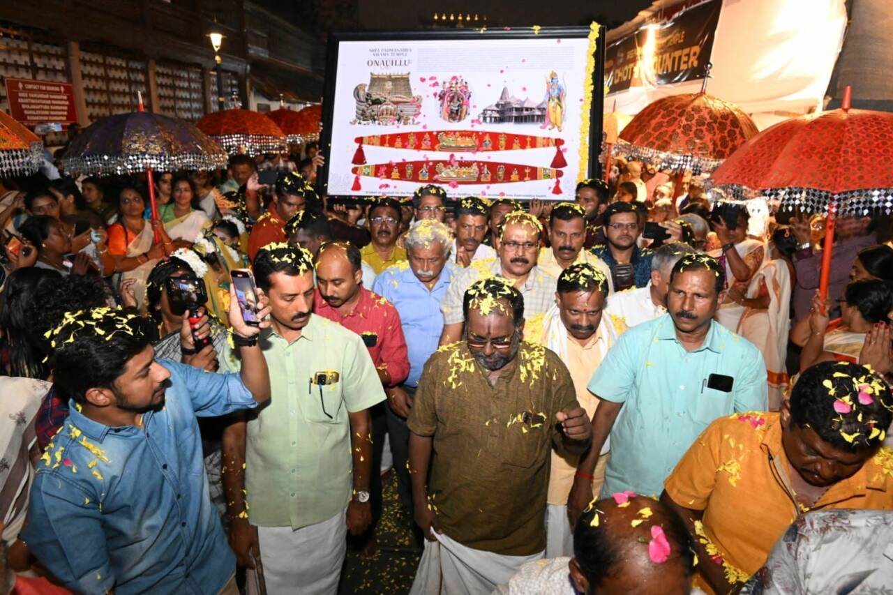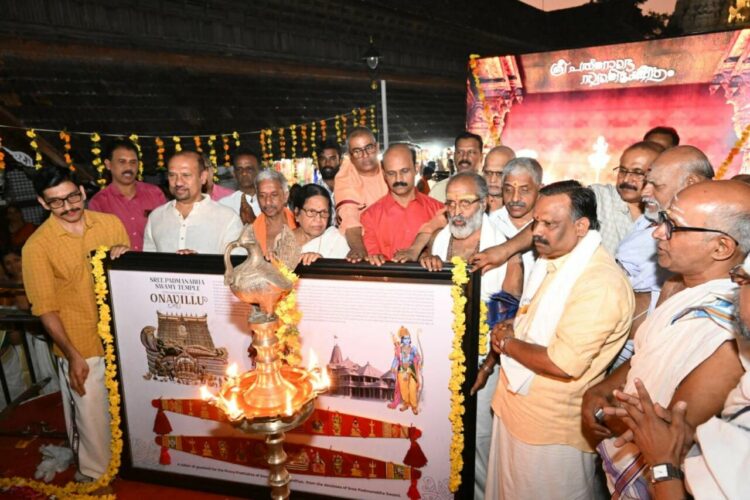 കൊളുത്തി. ക്ഷേത്രം ഭരണസമിതി അംഗങ്ങളായ അവിട്ടം തിരുനാള്‍ ആദിത്യ വര്‍മ്മ, തുളസി ഭാസ്‌കര്‍, എക്‌സിക്യൂട്ടീവ് ഓഫീസര്‍ ബി. മഹേഷ്, മാനേജര്‍ ഡി. ശ്രീകുമാര്‍ എന്നിവര്‍ ചേര്‍ന്ന് ശ്രീരാമ ജന്മഭൂമി തീര്‍ത്ഥക്ഷേത്ര ട്രസ്റ്റ് സംസ്ഥാന സഹ സംയോജകന്‍ സി.സി ശെല്‍വന്‍, മുന്‍ ഡിജിപി ടി.പി സെന്‍കുമാര്‍, ഹിന്ദു െഎക്യവേദി സംസ്ഥാന അധ്യക്ഷന്‍ വത്സന്‍ തില്ലങ്കേരി എന്നിവര്‍ക്ക് ഓണവില്ല് കൈമാറി.