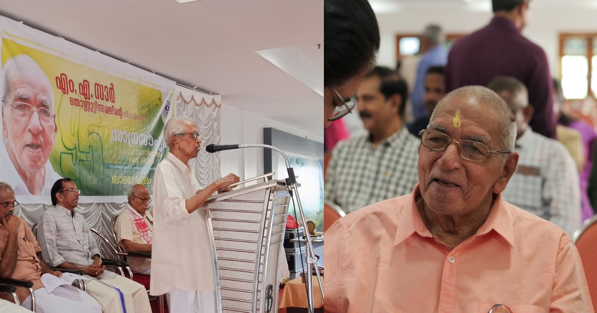 കൊച്ചി: ചെയ്യുന്ന കർമ്മം കൊണ്ട് ചിലർ ഈശ്വരന് പ്രിയപ്പെട്ടവരാകും. അത്തരത്തിൽ സത്കർമ്മം കൊണ്ട് ഈശ്വരന്റെ പ്രീതികിട്ടിയ ആളാണ് എം.എ കൃഷ്ണനെന്ന് മലയാളത്തിലെ മുതിർന്ന സാഹിത്യകാരൻ പ്രൊഫ.എം. കെ സാനു. പ്രായം കൊണ്ട് രണ്ട് വയസ് ഇളയതാണെങ്കിലും എം.എ കൃഷ്ണനെ ഞാൻ പൂജിക്കുന്നുവെന്നും അദ്ദേഹം പറഞ്ഞു. ബാലഗോകുലം രക്ഷാധികാരി എം. എ കൃഷ്ണന്റെ തൊണ്ണൂറ്റി അഞ്ചാം ജന്മദിനത്തിൽ എറണാകുളം എളമക്കര ഭാസ്കരീയത്തിൽ സംഘടിപ്പിച്ച സാന്ദ്ര സൗഹൃദം പരിപാടി ഉദ്ഘാടനം ചെയ്ത് സംസാരിക്കുകയായിരുന്നു എം. കെ സാനു മാസ്റ്റർ.