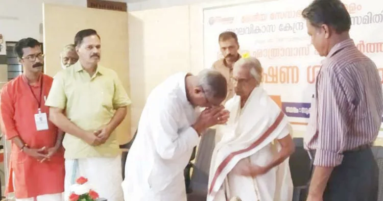 സുകൃതത്തില് നടന്ന ഛാത്രവാസ് സംസ്ഥാനതല പരിശീലന സമാപന സഭയിലായിരുന്നു ഭൂമിദാന ചടങ്ങു നടന്നത്. സീമാ ജാഗരണ് മഞ്ച് ദേശീയ സംയോജക് എ. ഗോപാലകൃഷ്ണന് കാര്ത്യായനിയമ്മയെ ചടങ്ങില് ആദരിച്ചു. തുടര്ന്ന് പിറന്നാള് സദ്യയും നടത്തി.