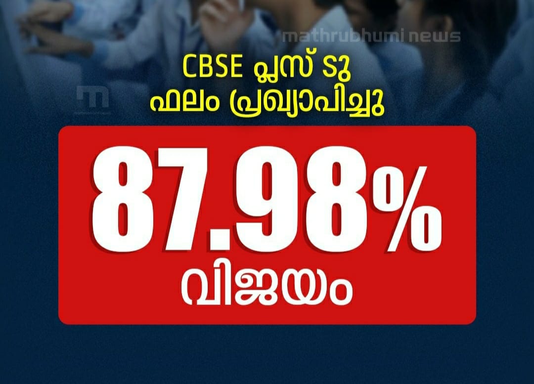 തിരുവനന്തപുരം: സിബിഎസ്ഇ പ്ലസ്ടു ഫലം പ്രസിദ്ധീകരിച്ചു. വിജയം 87.98 ശതമാനം 0.65 ശതമാനം വര്ദ്ധന. വിദ്യാര്ത്ഥികള്ക്ക് ഔദ്യോഗിക വെബ്സൈറ്റ് വഴി ഫലം അറിയാവുന്നതാണ്. തിരുവനന്തപുരം മേഖലയില് 99.91 ശതമാനം വിജയം രേഖപ്പെടുത്തി.