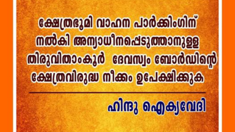 തിരുവിതാംകൂർ ദേവസ്വം ബോർഡിന് കീഴിൽ കഴിഞ്ഞ 4-5 വർഷത്തെ ഓഡിറ്റ് മാത്രമേ നടന്നിട്ടുള്ളൂ. ഓഡിറ്റിംഗിൽ പോലും നടന്നത് ക്രമക്കേട് മാത്രമാണ്. അഴിമതിയും കെടുകാര്യസ്ഥതയും നിറഞ്ഞ സംവിധാനമാണ് ദേവസ്വം ബോർഡ് എന്നുള്ളത്. തിരുവിതാംകൂർ ദേവസ്വം ബോർഡിന് കീഴിലുള്ള ക്ഷേത്ര ഭൂമികൾ വാഹന പാർക്കിംഗിന് നൽകാനുള്ള തീരുമാനത്തെ ഹിന്ദു ഐക്യവേദി എതിർക്കുമെന്നും അദ്ദേഹം കൂട്ടിച്ചേർത്തു.