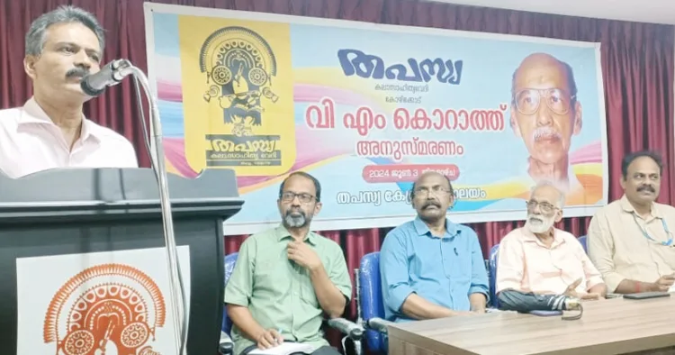 കോഴിക്കോട്: പത്രാധിപര് എന്ന നിലയില് മാധ്യമരംഗത്ത് നിര്ഭയത്വം പ്രകടിപ്പിച്ച പത്രാധിപരായിരുന്നു വി.എം. കൊറാത്തെന്ന് മാതൃഭൂമി മുന് ന്യൂസ് എഡിറ്റര് എം. സുധീന്ദ്രകുമാര്. തപസ്യ സംഘടിപ്പിച്ച, ജന്മഭൂമി മുന് പത്രാധിപര് വി.എം. കൊറാത്തിന്റെ അനുസ്മരണസമ്മേളനത്തില് സംസാരിക്കുകയായിരുന്നു അദ്ദേഹം.