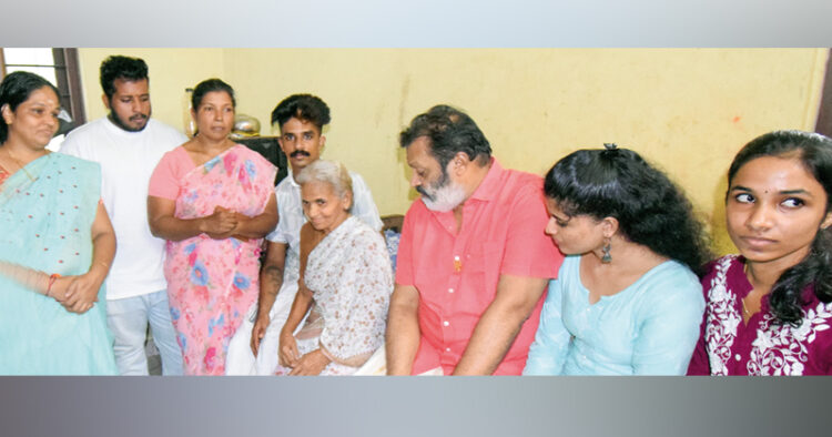 അഞ്ചര പതിറ്റാണ്ടിനു മുമ്പ്, സിപിഎം അക്രമികള് കൊലപ്പെടുത്തിയ വാടിക്കല് രാമകൃഷ്ണന്റെ ഭാര്യ ലീലയെ സന്ദര്ശിക്കാനാണ് സുരേഷ് ഗോപി എത്തിയത്. കമ്യൂണിസ്റ്റ് അക്രമത്തില് കൊല്ലപ്പെട്ട പയ്യന്നൂര് അന്നൂരിലെ രാമചന്ദ്രന്റെ ഭാര്യ രജനി, മകന് ദേവദത്ത്, മകള് ദേവാംഗന, ധര്മടത്തെ സന്തോഷിന്റെ ഭാര്യ ബേബി, മകന് സാരംഗ്, മകള് വിസ്മയ എന്നിവരും തിരുവങ്ങാട്ടെ ലീലയുടെ വീട്ടിലെത്തിയിരുന്നു. സിപിഎം അക്രമത്തെ തലമുറകളായി അതിജീവിക്കുന്നവരുടെ കൂടിച്ചേരലായി അത്.