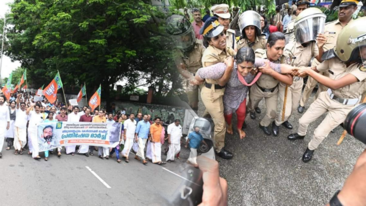 തിരുവനന്തപുരം: ആമയിഴഞ്ചാന്തോട്ടില് മരിച്ച ജോയിയുടെ മരണത്തിന് ഉത്തരവാദികള് കോര്പ്പറേഷന് ഭരണക്കാരാണെന്ന് ആരോപിച്ചും, കുടുംബത്തിന് ഒരു കോടി രൂപ നഷ്ടപരിഹാരം നല്കണമെന്നാവശ്യപ്പെട്ടും കോര്പറേഷന് ഓഫീസിലേക്ക് ബിജെപി സംഘടിപ്പിച്ച മാര്ച്ചിനുനേരെ പോലീസ് അതിക്രമം. വനിതാ കൗണ്സിലര്മാരെ നടുറോഡിലൂടെ വലിച്ചിഴച്ചു. സമാധാനപരമായിരുന്ന മാര്ച്ചിനു നേരെ ജലപീരങ്കി പ്രയോഗിച്ചത് അഞ്ചുതവണ. കൗണ്സിലര്മാരെ ലാത്തിയും ഷീല്ഡും ഉപയോഗിച്ച് പോലീസ് നേരിട്ടു.