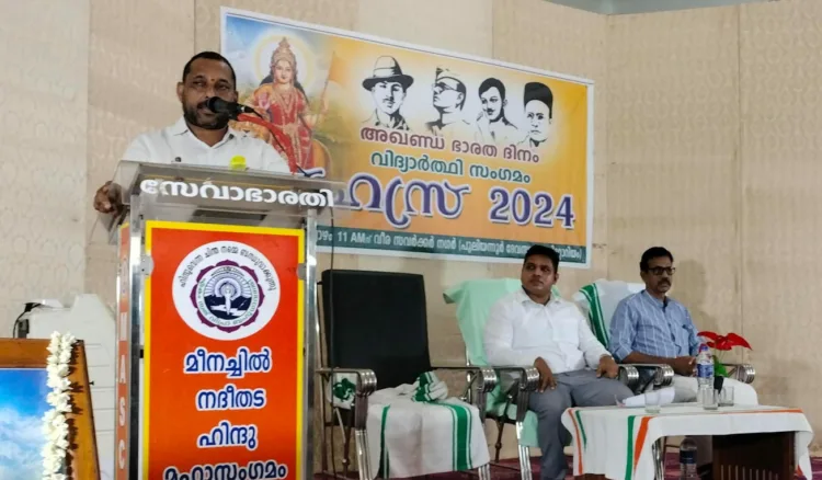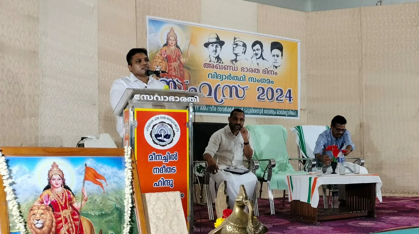 രാഷ്ട്രീയ സ്വയംസേവക സംഘം രാമപുരം , മീനച്ചിൽ, പൂഞ്ഞാർ ഖണ്ഡുകളുടെ ആഭിമുഖ്യത്തിൽ പാലാ പുലിയന്നൂർ ദേവസ്വം ഓഡിറ്റോറിയത്തിൽ വെച്ച് അഖണ്ഡഭാരത ദിനം വിദ്യാർത്ഥി സംഗമം – സഹസ്ര 2024 നടത്തി. ഇൻകം ടാക്സ് അഡിഷണൽ കമ്മീഷണർ ജോതിസ് മോഹൻ IRS അധ്യക്ഷത വഹിച്ച ചടങ്ങിൽ ആർ എസ്‌ എസ്‌ ദക്ഷിണ കേരള പ്രാന്ത പ്രചാരക് എസ്‌. സുദർശൻ മുഖ്യ പ്രഭാഷണം നടത്തി. പാഠപുസ്തകങ്ങൾക്ക് അപ്പുറം അനേകായിരം ദേശസ്നേഹികളുടെ സഹനത്തിന്റെ ഫലം ആണ് നമ്മൾ ഇന്ന് കാണുന്ന സ്വാതന്ത്ര്യം എന്നും അവരെ കുറിച്ച് കൂടുതൽ അറിയാൻ പുതുതലമുറ ശ്രമിയ്ക്കണം എന്നും അദ്ദേഹം പറഞ്ഞു.