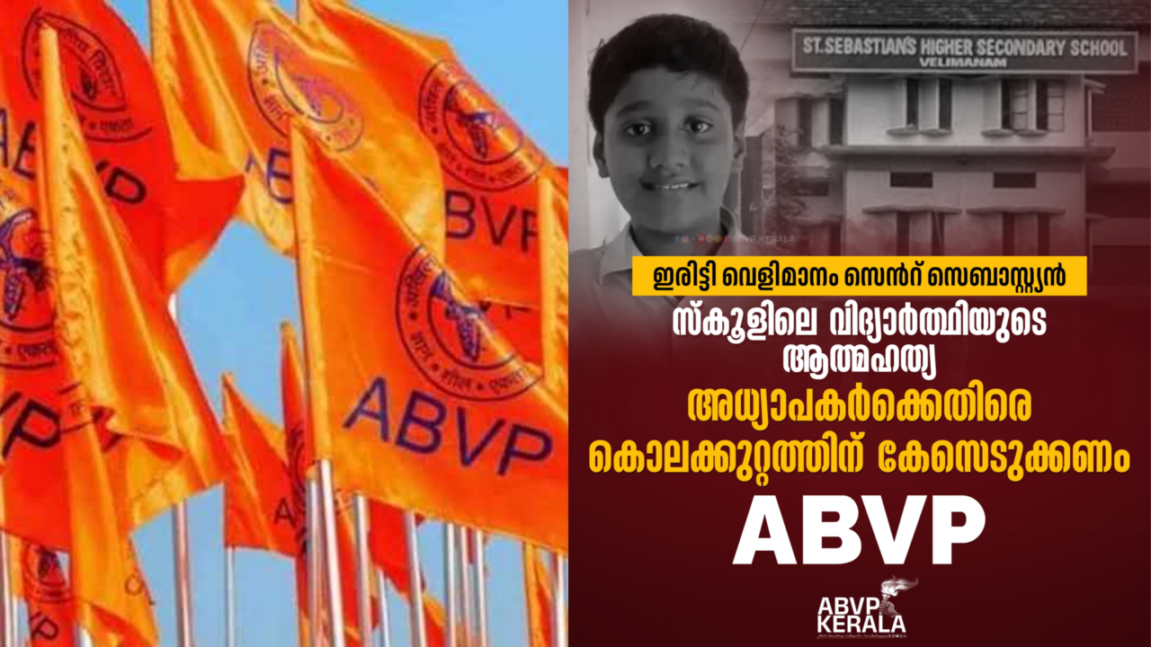 ഇരിട്ടി വെളിമാനം സെൻറ് സെബാസ്റ്റ്യൻ സ്‌കൂളിലെ വിദ്യാർത്ഥിയുടെ ആത്മഹത്യ; അധ്യാപകർക്കെതിരെ കൊലക്കുറ്റത്തിന് കേസെടുക്കണം: എബിവിപി