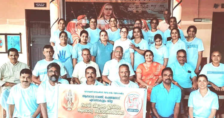 ചെങ്ങമനാട്: യോഗ നിത്യേന പരിശീലിക്കുന്നതിലൂടെ ആര്യോഗ്യവും മാനസിക ഉല്ലാസവും ലഭിക്കുന്നതോടൊപ്പം പലതരത്തിലുള്ള രോഗങ്ങളും മാനസിക സംഘര്ഷങ്ങളും ഒഴിവാക്കാമെന്ന് ആരോഗ്യഭാരതി അഖിലഭാരതീയ സംഘടനാ സെക്രട്ടറി ഡോ. അശോക്കുമാര് വാര്ഷണേയ്. ദേശീയ ആയുഷ് മന്ത്രാലയത്തിന്റെ കീഴിലുള്ള ആരോഗ്യഭാരതിയുടെ നേതൃത്വത്തില് ചെങ്ങമനാട് സരസ്വതി വിദ്യാനികേതനില് നടന്നുവരുന്ന യോഗ പരിശീലനാര്ത്ഥികള്ക്കായി ‘ലഹരിമുക്തജീവിതം’ എന്ന വിഷയത്തില് പ്രഭാഷണം നടത്തുകയായിരുന്നു അദ്ദേഹം.