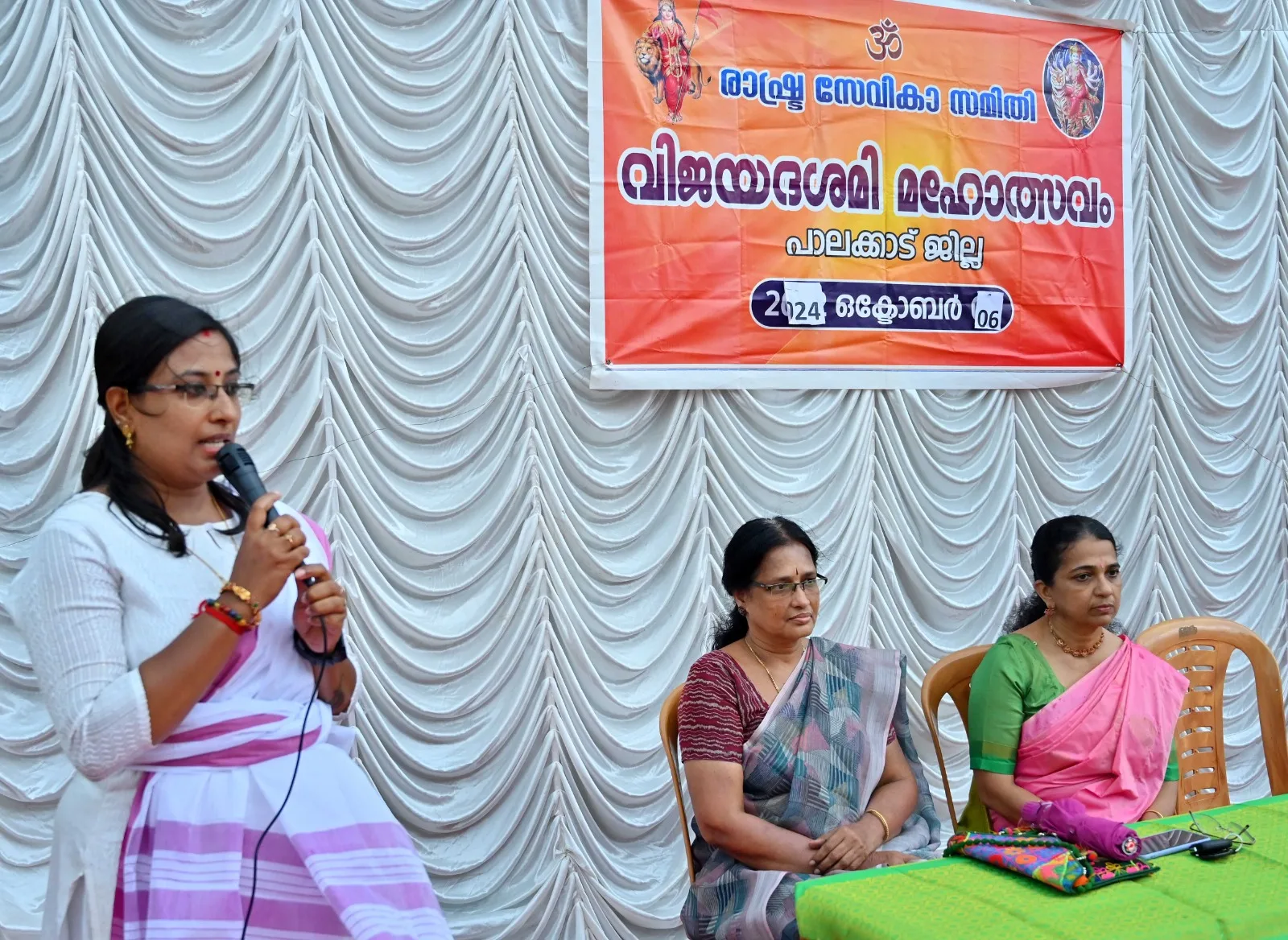 രാഷ്ട്ര സേവിക സമിതി പാലക്കാട് ജില്ലാ കാര്യവാഹിക അശ്വതി മണികണ്ഠൻ ഭദ്രദീപം കൊളുത്തി.