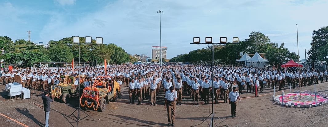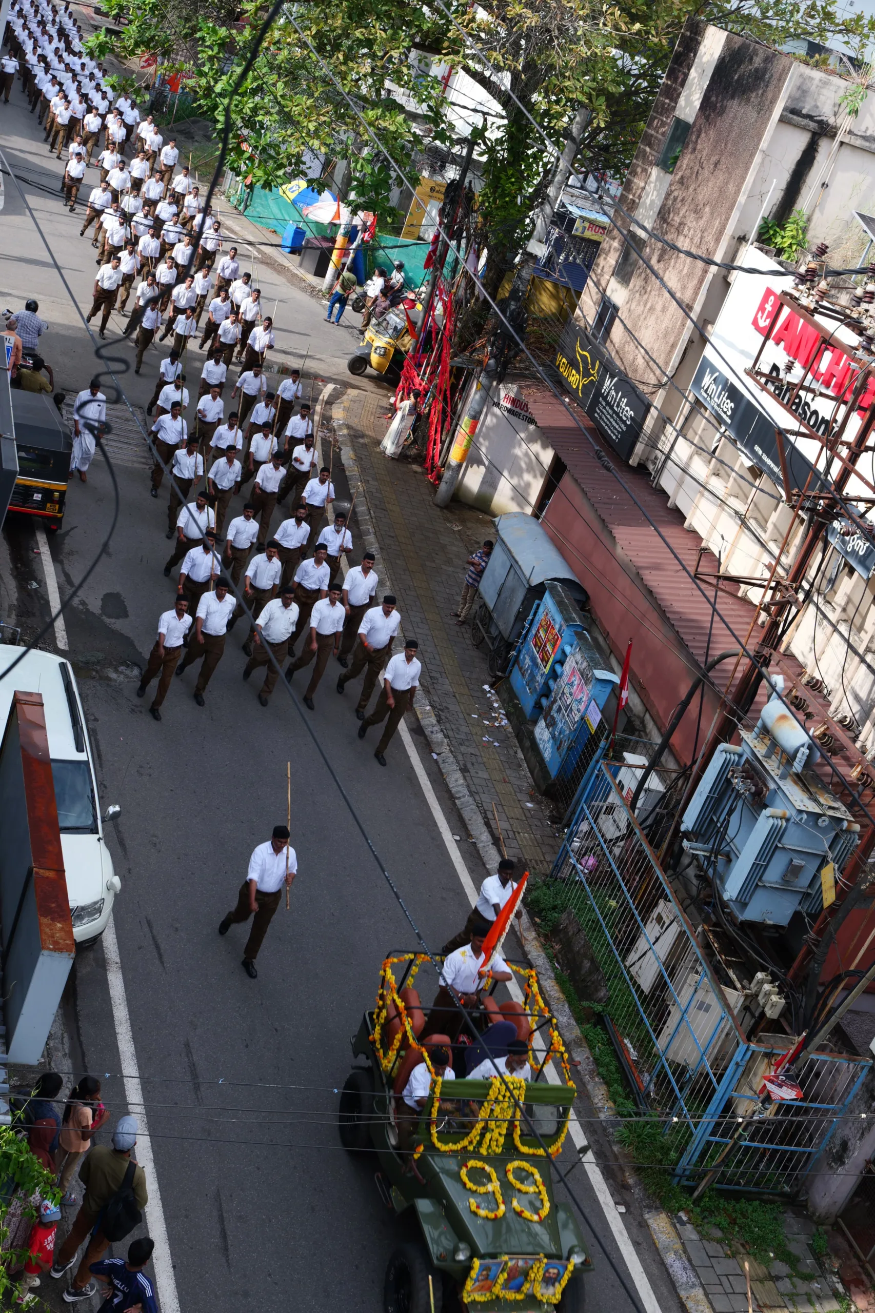 എറണാകുളം നഗരത്തിന്റെ രണ്ടു ഭാഗങ്ങളിൽ നിന്നും ആരംഭിച്ച പഥസഞ്ചലനം മറൈൻ ഗ്രൗണ്ടിൽ സംഗമിച്ചു. മഹാനഗർ കാര്യവാഹ് വി എസ് രമേഷ് സ്വാഗതം പറഞ്ഞു. സ്വാഗതസംഘം അധ്യക്ഷൻ ജസ്റ്റിസ് എം രാമചന്ദ്രൻ, എറണാകുളം വിഭാഗ് സംഘചാലക് എം എ വാസുദേവൻ, കൊച്ചി മഹാനഗരം സംഘചാലക് അഡ്വ. പി വിജയകുമാർ എന്നിവർ സന്നിഹിതരായിരുന്നു.