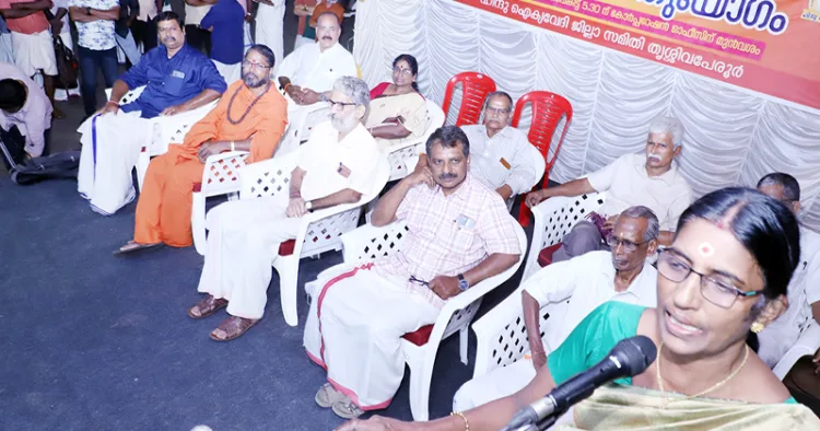 കേരളത്തിലെ ഉയര്ന്നുവരുന്ന ഹൈന്ദവ മുന്നേറ്റത്തെ സര്ക്കാരും മുന്നണികളും ഭയക്കുന്നു എന്നതിനുള്ള തെളിവാണ് ശബരിമലയിലെ സ്പോട്ട് ബുക്കിങ് വിഷയത്തില് രാഷ്ട്രീയ പാര്ട്ടികളുടെ തിടുക്കത്തിലുള്ള പ്രതികരണങ്ങളെന്നും ബാബു പറഞ്ഞു. ജില്ലാ പ്രസിഡന്റ് വി. മുരളീധരന് അധ്യക്ഷനായിരുന്നു. പി. സുധാകരന്, പ്രസാദ് കാക്കശ്ശേരി, പ്രദീപ്കുമാര് എന്നിവരും സംസാരിച്ചു.