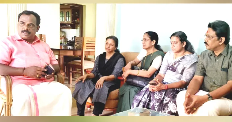 ബിഎംഎസ് സംസ്ഥാന പ്രസിഡന്റ് ബി. ശിവജി സുദര്ശനന്, ഫെറ്റോ സംസ്ഥാന പ്രസിഡന്റ് എസ്.കെ. ജയകുമാര്, വൈസ് പ്രസിഡന്റ് അനിത രവീന്ദ്രന്, എന്ജിഒ. സംഘ് ജനറല് സെക്രട്ടറി എസ്. രാജേഷ്, എന്ടിയു പ്രസിഡന്റ് പി.എസ്. ഗോപകുമാര്, കെജിഒ സംഘ് സംസ്ഥാന പ്രസിഡന്റ് ബി. മനു, വൈസ് പ്രസിഡന്റ് ഡോ. എ.ബി. രമാദേവി, സെക്രട്ടേറിയറ്റ് എംപ്ലോയീസ് സംഘ് ജനറല് സെക്രട്ടറി അജയ് കെ. നായര്, കേരള പിഎസ്സി എംപ്ലോയീസ് സംഘ് പ്രസിഡന്റ് പ്രദീപ്, ജനറല് സെക്രട്ടറി ഹരികൃഷ്ണന്, ഗവ. പ്രസ് വര്ക്കേഴ്സ് സംഘ് ജന. സെക്രട്ടറി സി.കെ. ജയപ്രസാദ് എന്നിവര് മലയാലപ്പുഴയിലെ വീട്ടിലെത്തി അനുശോചനം അറിയിച്ചു. എല്ലാ കാര്യങ്ങള്ക്കും ഒപ്പമുണ്ടാകുമെന്നും കുടുംബത്തിന് നീതി ലഭ്യമാക്കുന്നതിനുള്ള ശ്രമങ്ങള് ഊര്ജ്ജിതമായി തുടരുമെന്നും അവര് ഉറപ്പുനല്കി.