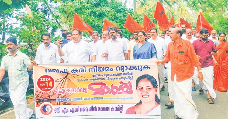 വഖഫ് ഭീകരതയില് ഭൂമി നഷ്ടപ്പെട്ടാല് മുനമ്പത്ത് മത്സ്യബന്ധനം നടത്തി ഉപജീവന മാര്ഗം നടത്തുന്ന നൂറുകണക്കിന് മത്സ്യത്തൊഴിലാളികളുടെ തൊഴില് നഷ്ടമാകും. മുനമ്പത്ത് നിന്ന് മറ്റെവിടെയെങ്കിലും തൊഴില് തേടി പോകേണ്ടതായും വരും. മാര്ച്ചില് മന്ത്രിയും അണിചേര്ന്നു. വേളാങ്കണ്ണിമാതാ പള്ളിക്ക് സമീപം മാര്ച്ച് സമാപിച്ചു. ബിഎംഎസ് ദേശീയസമിതി അംഗങ്ങളായ സി. ഉണ്ണികൃഷ്ണന് ഉണ്ണിത്താന്, കെ.കെ. വിജയകുമാര്, സംസ്ഥാന ജനറല് സെക്രട്ടറി ജി.കെ. അജിത്ത്, സംസ്ഥാന സെക്രട്ടറിമാരായ സിബി വര്ഗീസ്, അഡ്വ. ആശാമോള്, ചന്ദ്രലത, ജില്ലാ സെക്രട്ടറി ധനീഷ് നീറിക്കോട്, ഖജാന്ജി കെ.എസ്. ശ്യാംജിത്ത് എന്നിവര് മാര്ച്ചിന് നേതൃത്വം നല്കി.