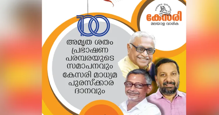 കോഴിക്കോട്: ആര്എസ്എസ് ശതാബ്ദിയോടനുബന്ധിച്ച് കേസരി വാരികയുടെ ആഭിമുഖ്യത്തില് നടന്നു വരുന്ന അമൃതശതം പ്രഭാഷണ പരമ്പരയുടെ സമാപനവും കേസരി മാധ്യമ പുരസ്കാര സമര്പ്പണവും ഇന്ന് വൈകിട്ട് 5.30 ന് കേസരി ഭവനില്.