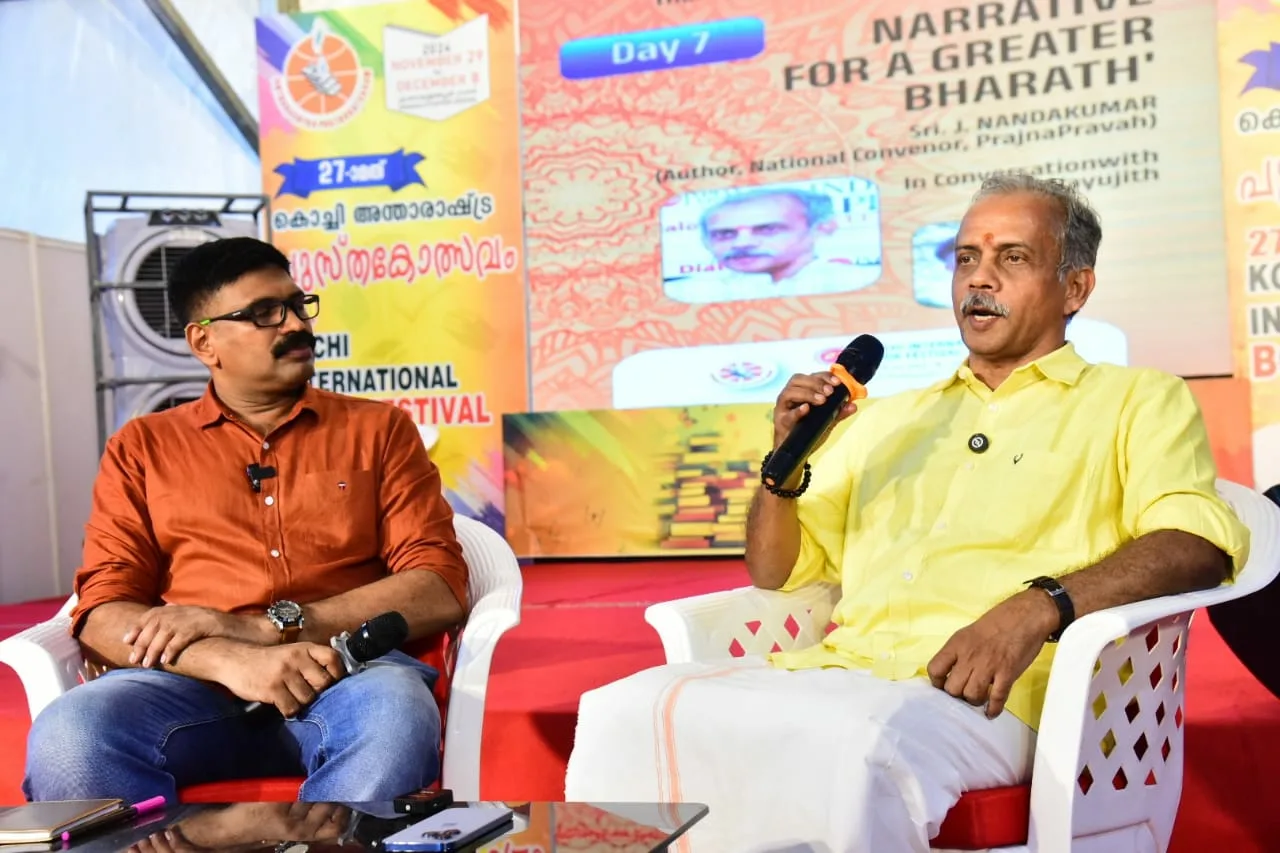 കൊച്ചി : ലോകത്ത് സമാധാനവും സഹവർത്തിത്വവും പുലരണമെങ്കിൽ സുശക്തമായ ഭാരതം ആവശ്യമാണെന്ന് പ്രജ്ഞാ പ്രവാഹ് ദേശീയ സംയോജകൻ ജെ . നന്ദകുമാർ. ഭാരതം ലോകത്തിനു സമർപ്പിക്കുന്നത് മഹത്തായ ഒരു ദർശനമാണ്. അടിച്ചമർത്തുന്ന ആശയങ്ങളല്ല യഥാർത്ഥ സ്വാതന്ത്ര്യമെന്ന ആദർശമാണ് ഹിന്ദുത്വത്തിനുള്ളതെന്നും അദ്ദേഹം വ്യക്തമാക്കി. കൊച്ചിയിൽ നടക്കുന്ന അന്താരാഷ്ട്ര പുസ്തകോത്സവത്തിൽ ഗ്രാൻഡ് നറേറ്റീവ് ഫോർ എ ഗ്രേറ്റർ ഭാരത് എന്ന വിഷയത്തിൽ സംസാരിക്കുകയായിരുന്നു അദ്ദേഹം.