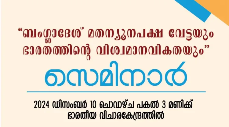 “ബംഗ്ലാദേശ് മതന്യൂനപക്ഷ വേട്ടയും ഭാരതത്തിന്റെ വിശ്വ മാനവികതയും” എന്ന വിഷയത്തിൽ സെമിനാർ നാളെ