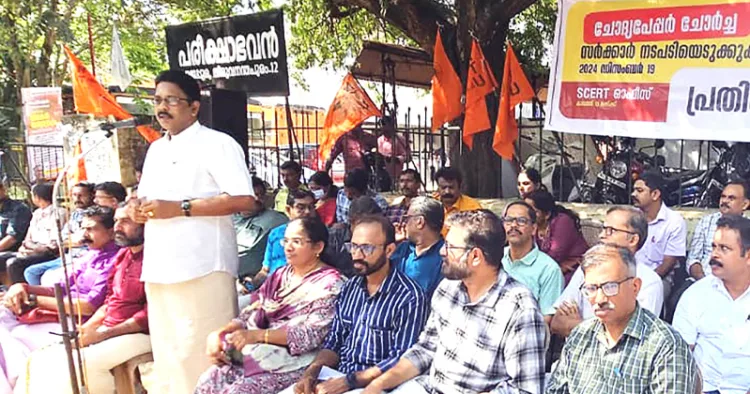 തിരുവനന്തപുരം: ഒന്പതാം ക്ലാസിലെ സാമൂഹ്യപാഠം ചോദ്യ പേപ്പറില് ഭാരതത്തി ഭൂപടം വികലമായി ഉള്പ്പെടുത്തിയ സംഭവം ദേശീയ അന്വേഷണ ഏജന്സി അന്വേഷിക്കണമെന്നും പൊതുവിദ്യാഭ്യാസ വകുപ്പ് നടത്തുന്ന പരീക്ഷകളുടെ ചോദ്യ പേപ്പറുകള് ആവര്ത്തിച്ച് ചോരുന്നതില് വിശദമായ അന്വേഷണം വേണമെന്നും ദേശീയ അദ്ധ്യാപക പരിഷത്ത് (എന്ടിയു) സംസ്ഥാന പ്രസിഡന്റ് പി.എസ്. ഗോപകുമാര് ആവശ്യപ്പെട്ടു. എസ്സിഇആര്ടി ഓഫീസിന് മുന്നില് ദേശീയ അധ്യാപക പരിഷത്തിന്റെ പ്രതിഷേധ ധര്ണ ഉദ്ഘാടനം ചെയ്യുകയായിരുന്നു അദ്ദേഹം.