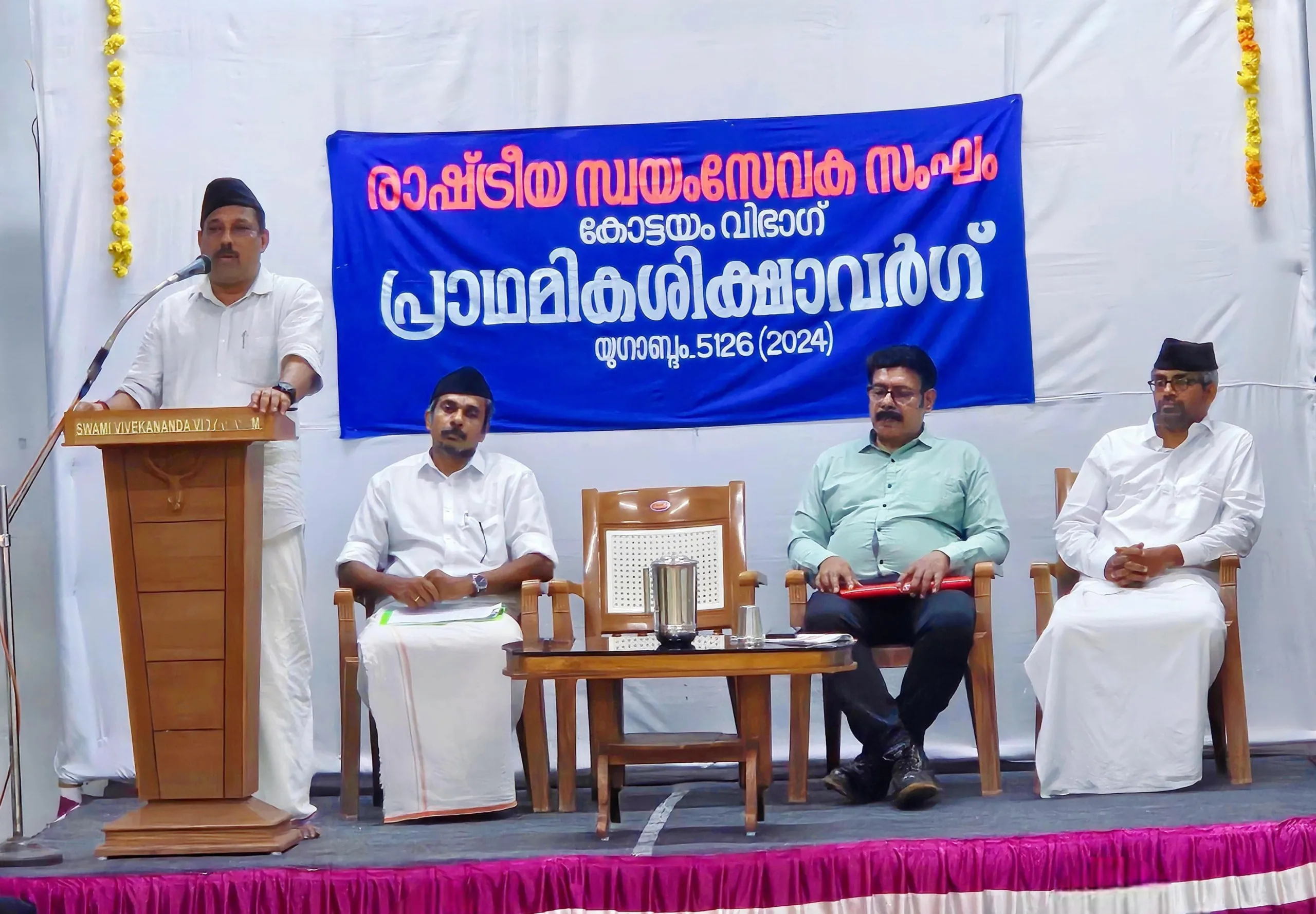 പൂഞ്ഞാർ: രാഷ്ട്രീയ സ്വയംസേവക സംഘം കോട്ടയം വിഭാഗിന്റെ (റവന്യൂ ജില്ല) പ്രാഥമിക ശിക്ഷാ വർഗ്ഗ് റിട്ട. എസ് പി ടോജൻ വി സിറിയക് ഉദ്ഘാടനം ചെയ്തു. മുപ്പത് വർഷത്തെ ഔദ്യോഗിക ജീവിതത്തിൽ ആർഎസ്എസിനെ അടുത്തറിയാൻ അവസരമുണ്ടായിട്ടുണ്ടെന്ന് ഓർമ്മിച്ച അദ്ദേഹം സംഘത്തിൻ്റെ അച്ചടക്കവും ദേശസനേഹവും വളരെയധികം ആകർഷിച്ചിട്ടുണ്ടെന്നും കഠിനാധ്വാനവും സ്വഭാവമഹിമയും മഹത്വത്തിലേക്ക് ഉയർത്തുമെന്നും പറഞ്ഞു.