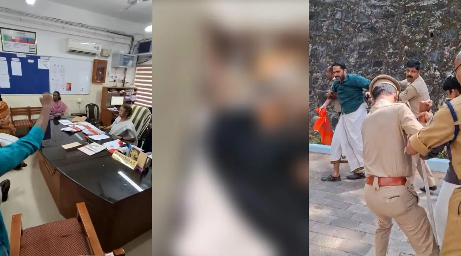 പ്രിൻസിപ്പലിനെ ഉപരോധിച്ച അരുൺ മോഹൻ, കോട്ടയം ജില്ലാ സെക്രട്ടറി ശ്രീഹരി ഉദയൻ, സംസ്ഥാന സമിതി അംഗം അശ്വതി.ജെ നായർ, യൂണിറ്റ് സെക്രട്ടറി വിനായക് മോഹൻ എന്നിവരെ പോലീസ് അറസ്റ്റ് ചെയ്ത് നീക്കി.