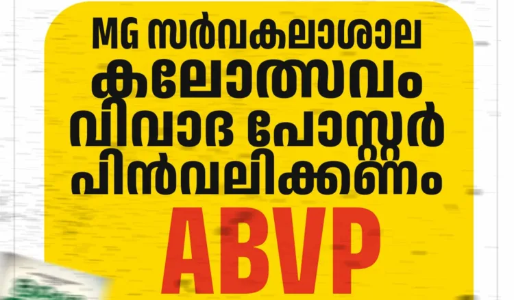 കോട്ടയം : എംജി സർവകലാശാല കലോത്സവത്തിന്റെ ഭാഗമായി പുറത്തിറക്കിയ പാലസ്തീൻ അനുകൂല പോസ്റ്റർ പിൻവലിക്കണമെന്ന് എബിവിപി സംസ്ഥാന ജോയിൻ്റ് സെക്രട്ടറി ഗോകുൽ കൃഷ്ണൻ ആവശ്യപ്പെട്ടു.