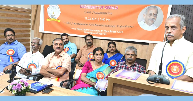 തിരുവനന്തപുരം: ഭാരതീയ ജ്ഞാന പാരമ്പര്യം വീണ്ടെടുക്കേണ്ടതുണ്ടെന്നും പുതു തലമുറയെ വാര്ത്തെടുക്കാനുള്ള പ്രാഥമിക ഉത്തരവാദിത്വം അദ്ധ്യാപകര്ക്കാണെന്നും പ്രജ്ഞാപ്രവാഹ് ദേശീയ സംയോജകന് ജെ. നന്ദകുമാര്. അഖിലഭാരതീയ ശൈഷിക് മഹാസംഘ് കേരള യൂണിവേഴ്സിറ്റി യൂണിറ്റ് ഉദ്ഘാടനം ചെയ്ത് പ്രസ്ക്ലബ് ഹാളില് സംസാരിക്കുകയായിരുന്നു അദ്ദേഹം.