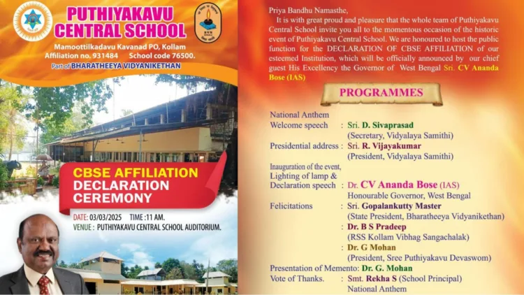 പുതിയകാവ് സെൻട്രൽ സ്കൂളിന് സിബിഎസ്‌ഇ അംഗീകാരം; മാർച്ച്‌ 3ന് സി. വി ആനന്ദ ബോസ് നാടിന് സമർപ്പിക്കും